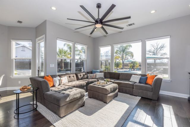 South Livermore estate in the coveted Oaks Development! This one has it all with single story living, gracious and sprawling with one of the best backyards out there! Custom pool with energy saving radiant solar heating, separate built-in spa, lighted/fan adorned gazebo, and so much more for entertaining or just family fun! This north facing entry welcomes you with today's modern landscape and easy care. You'll enjoy the contemporary elevation with newer three car garage doors, EV car charger in garage, and whole house solar for an energy efficient lifestyle. Some noted interior upgrades included engineered hardwood floors, light quartz island/counter, new white shaker cabinets with updated hardware, matching updated hardware throughout doors/etc, recessed lighting, whole house fan, newer HVAC system, and custom light fixtures throughout. All bathrooms upgraded with frameless enclosures with today's sought-after features. Located on a expansive, private lot, with views of the "lake", natural perserve, and surrounding valley hills. Side yard access with space of both sides of the lot. Premuim estate both inside and out, don't miss this one as it will not last on the market!