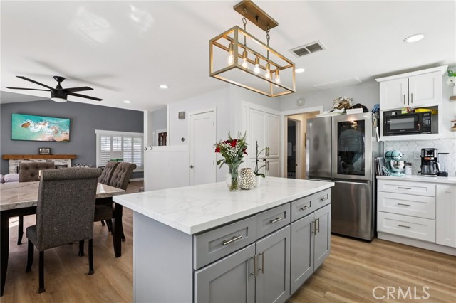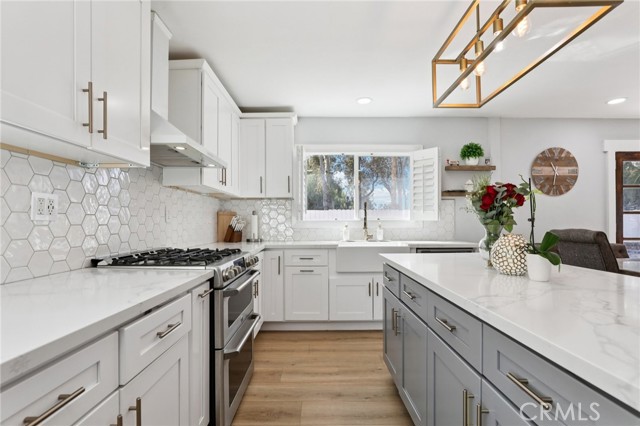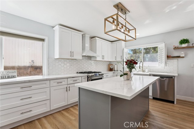 Located on a private cul-de-sac with no rear neighbors, this beautiful 4-bedroom, 3-bathroom home at 27172 Valleymont blends modern luxury with a highly functional layout. The light-filled, open-concept interior features a fully remodeled kitchen with granite countertops and a farmhouse sink, alongside a desirable downstairs bedroom and full bathroom perfect for guests. High-end upgrades like plantation shutters, a tankless water heater, and a primary suite with a custom barn door elevate the living space. A low maintenance backyard and a fenced-in front yard are great spaces for entertaining or just enjoying the outdoors. French doors lead to an entertainer’s patio overlooking mature trees in the adjacent park. Complete with an oversized driveway offering RV/boat parking and the rare financial benefit of no HOA or Mello-Roos fees, this property offers exceptional value within walking distance of Trabuco Hills High School.