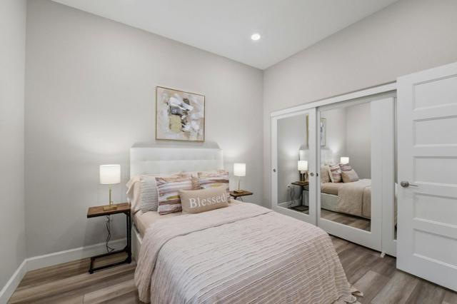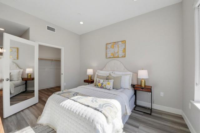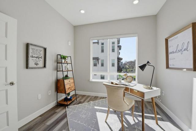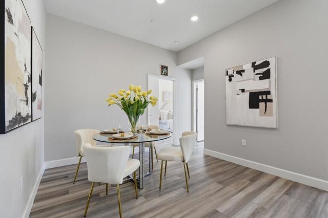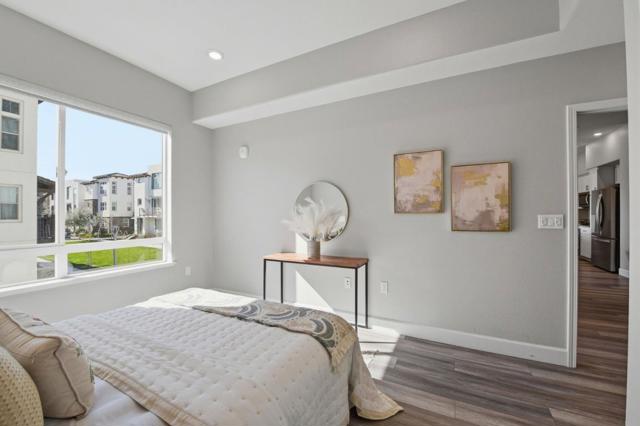 Immaculate and Impeccable Condition! Welcome to this impressive corner 3-bedroom, 2-bath residence in the Latitude community at Communications Hill. Designed for modern living, this end-unit home features an airy open-concept layout filled with natural light streaming from multiple directions. Recessed lighting, expansive windows create a bright, inviting atmosphere throughout. The contemporary kitchen is a true centerpiece, offering a generous island, sleek quartz counters, and premium stainless steel appliances ideal for home chefs and entertainers alike. Step outside through the sliding doors to a private balcony and take in sweeping views of the city and surrounding hills. The primary suite delivers comfort with a spacious walk-in closet and a refined ensuite bath, while additional bedrooms provide flexibility for guests or a home office. Smart touches such as powered window shades and energy-efficient design add everyday convenience. Enjoy the walking trails, nearby Lewis Manly Park, and quick access to shopping, dining, and major commuter routes.