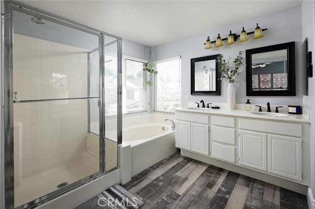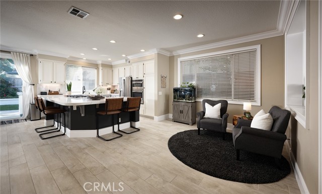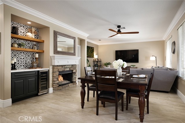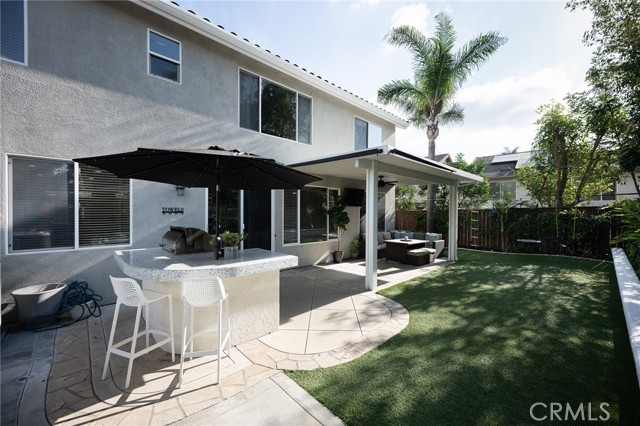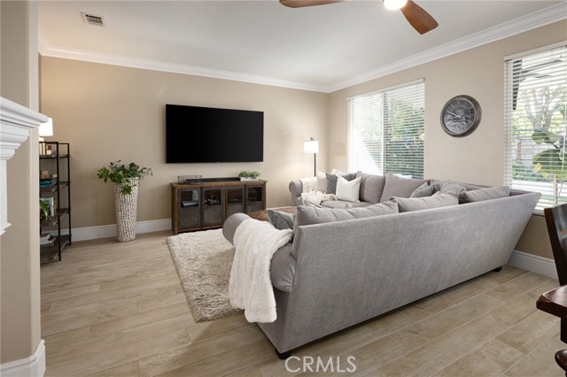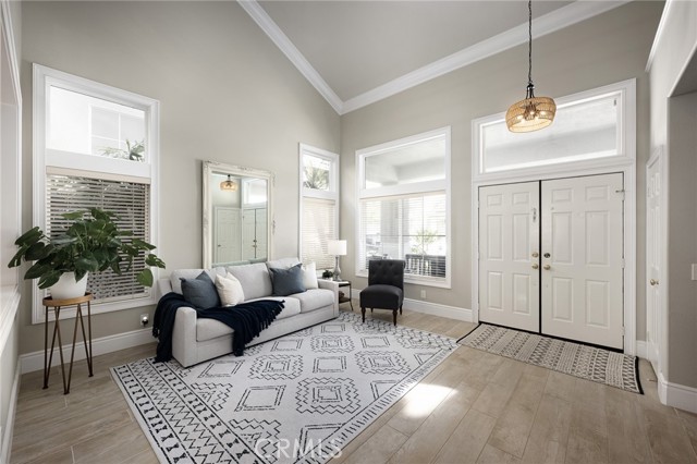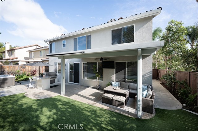 Located in the highly desirable Corazon tract in the Tijeras Creek area, this beautifully upgraded 4 bedroom home with a spacious loft offers comfort, style, and thoughtful upgrades throughout. The living room features a vaulted ceiling that creates an open and inviting feel. The kitchen is the heart of the home featuring a large quartz island with stove top, generous countertop space and cabinets, perfect for everyday living and entertaining. The adjacent family room and dining area are centered around a stacked stone fireplace that adds warmth and character. Upgrades include baseboards, recessed lighting, crown molding, cased windows, and beautiful tile flooring that looks like wood. The primary bedroom is spacious and bright and the primary bath features a dual vanity, soaking tub, separate stall shower, and walk in closet. Upstairs you will also find three additional bedrooms along with a large loft with plantation shutters that offers flexible space for a media room, home office, playroom, or additional lounge area. A convenient upstairs laundry room adds everyday ease and functionality. Additional features include a welcoming front porch, whole house fan, whole house water filter, permanent trimlights for holiday lighting, covered patio with ceiling fan, LED lighting and TV setup, Sundance hot tub, solar with a loan, and a replaced HVAC system. The two car attached garage adds convenience and storage. Enjoy all that Rancho Santa Margarita has to offer including swimming pools, tennis courts, the Beach Club lagoon, the lake, scenic parks, community events, and more.