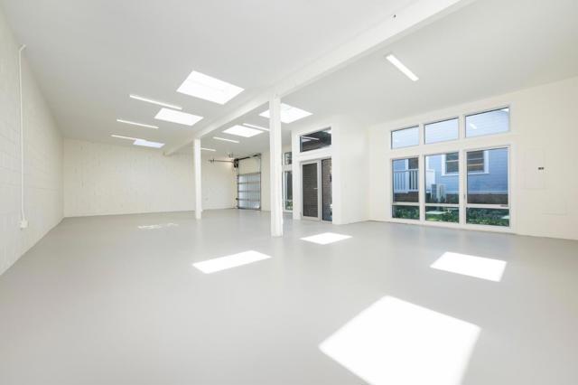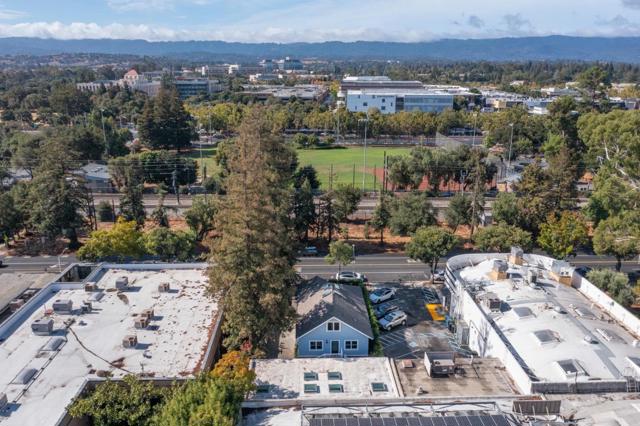 Two recently updated buildings in downtown Palo Alto zoned CD-N, which allows a multiplicity of uses: residential, office, retail, personal services [e.g., fitness center], and more or a mix of uses // Front house [2560 sf] has 3 bedrooms [or offices] and an open lower level [955 sf] that can accommodate a variety of personal or commercial uses // Rear building [1380 sf] is a brick clad high bay clear space with skylights, a wall of glass, and a glass roll up door: an open canvas for your creativity // Inviting landscape embraces the buildings // Walk to downtown amenities // Refer to SB 79 for high density redevelopment potential //