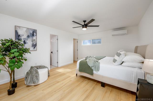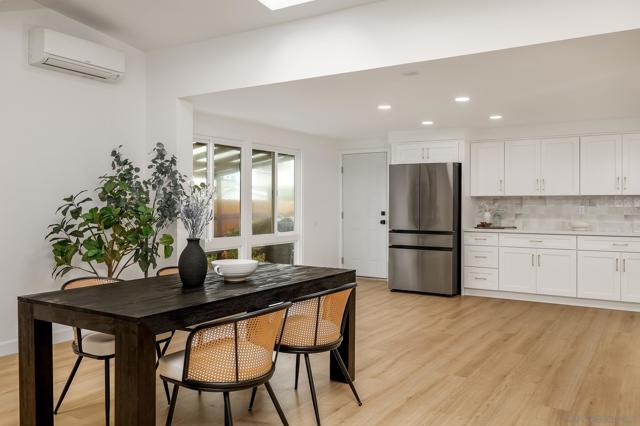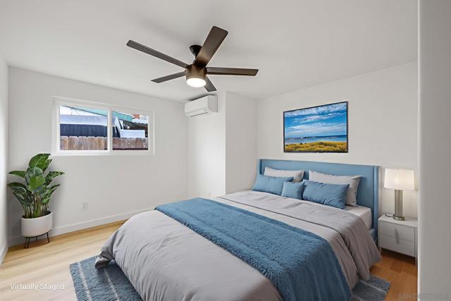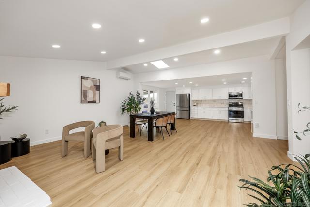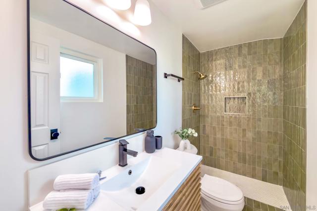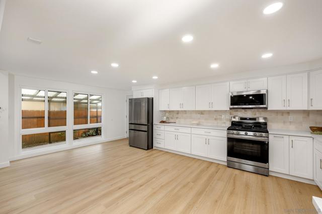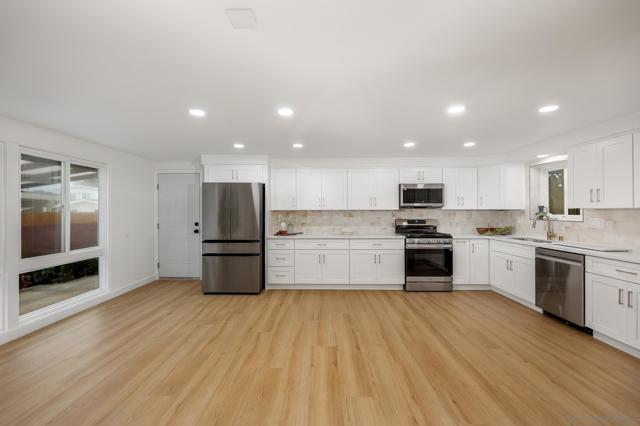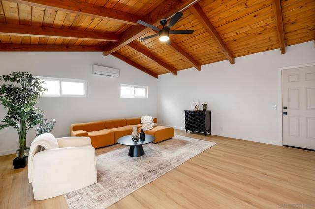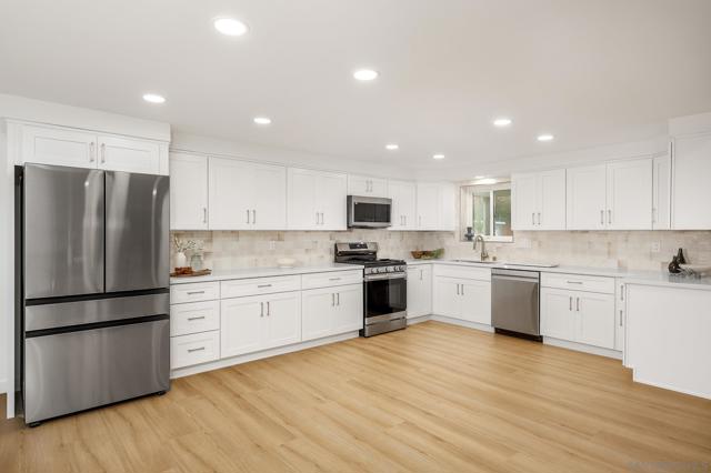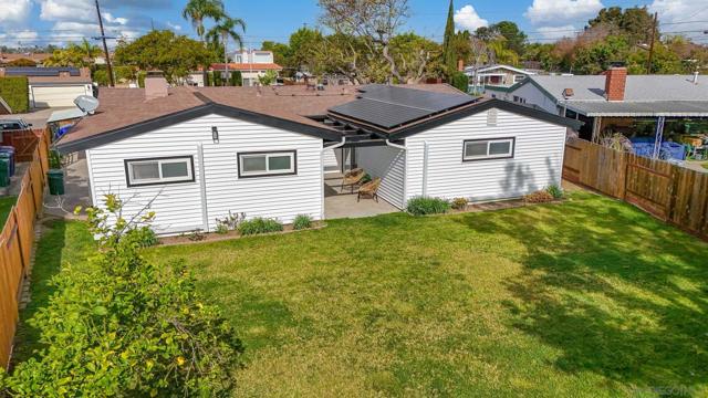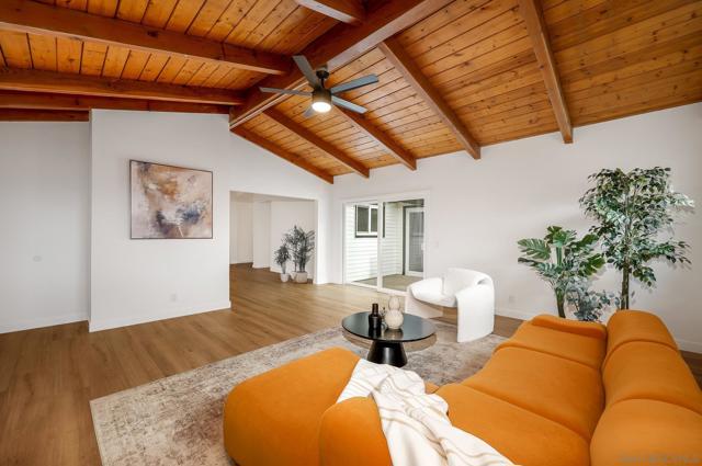 Conveniently located in the highly sought-after Serra Mesa neighborhood, this stunning 2,100 sq ft home with owned solar panels has been fully reimagined from top to bottom. Situated on a 7,700 sq ft lot, this four-bedroom, three-bathroom residence offers privacy and tranquility while still being just minutes from everything San Diego has to offer. As you approach the home, you’ll be welcomed by a spacious green front lawn, a two-car garage, and a mature Tipu tree providing the perfect shade on warm summer days. Step through the character-rich front doors into a thoughtfully designed foyer that opens to a bright, open-concept kitchen and dining area. Custom cabinetry with designer-quality finishes, smart appliances, and luxury vinyl plank flooring throughout make this 1960-built home feel modern and refreshed. Enjoy cozy evenings by the wood-burning fireplace or relax in the oversized great room featuring high vaulted ceilings. Step outside through the breezeway to your private backyard retreat, complete with a mature lemon tree and sweeping views. Additional highlights include an oversized primary suite with an ensuite bathroom and walk-in closet, abundant hallway storage, and natural light enhanced by solar tubes. Two generously sized secondary bedrooms and an additional bedroom with its own ensuite bathroom provide flexible living options for guests or multigenerational living. Homes like this are rare. Don’t miss the opportunity to make it yours.