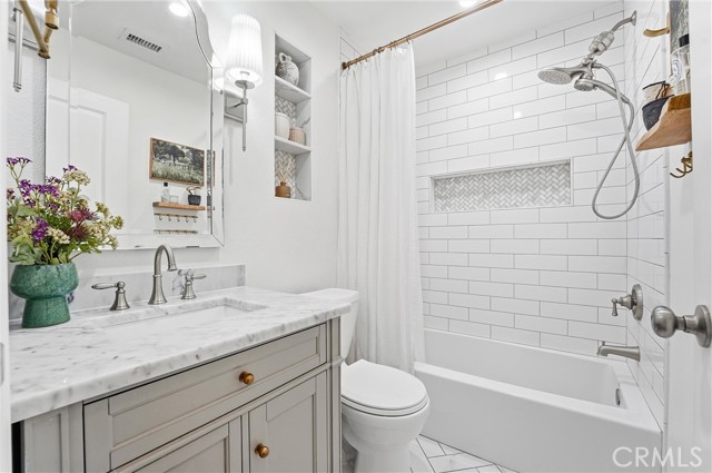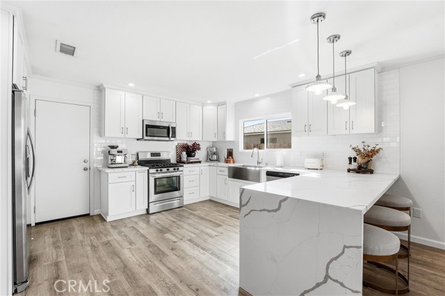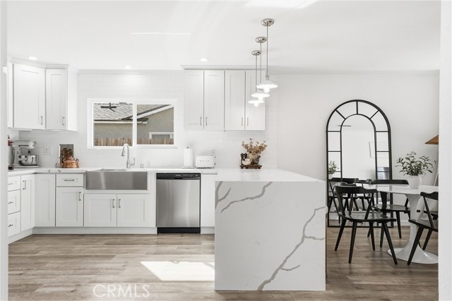 WELCOME TO THIS EXQUISITELY RENOVATED SINGLE STORY HOME in the heart of highly desirable CHINO HILLS! Thoughtfully designed and FULLY REMODELED inside, this elegant residence combines modern comfort with timeless appeal. Every detail, from the OPEN CONCEPT FLOOR PLAN to the designer finishes, reflects pride of ownership and sophisticated taste. Step inside to find a bright, airy layout filled with natural light. NEW WINDOWS, LUXURY VINYL PLANK FLOORING, CROWN MOLDING, and RECESSED LIGHTING carry throughout, creating a seamless blend of warmth and contemporary style. The living area centers around a striking FLOOR-TO-CEILING PORCELAIN FIREPLACE — the perfect gathering spot for relaxing evenings at home. The heart of this home is its STUNNING CHEF’S KITCHEN, featuring crisp white SHAKER CABINETRY, elegant QUARTZ COUNTERTOPS with a dramatic WATERFALL EDGE PENINSULA, and a timeless SUBWAY TILE BACKSPLASH. Designer pendant lighting enhances the space, while stainless steel appliances, including a GAS RANGE and a FARMHOUSE SINK, add both beauty and function. Whether entertaining friends or sharing family meals, this kitchen delivers both luxury and comfort. The home’s bathrooms are equally impressive, showcasing MARBLE COUNTERTOPS, PORCELAIN AND REAL MARBLE DETAILS, and refined craftsmanship in every finish. The PRIMARY SUITE offers a spa-like WALK-IN SHOWER, while the secondary bath features a TUB/SHOWER COMBO ideal for families or guests. Additional upgrades include a NEWER LENNOX HVAC SYSTEM, NEWER WATER HEATER, and DRYWALLED GARAGE with flexible use potential. Step outdoors to a FRESHLY PAINTED, COVERED CONCRETE PATIO overlooking a large grassy side area and SIDE GATE with POTENTIAL RV PARKING — perfect for gatherings or quiet evenings under the California sunset. Beyond the home itself, this exceptional property offers unmatched convenience. Located near SEVERAL BEAUTIFUL PARKS, upscale SHOPPING, fine DINING, and vibrant ENTERTAINMENT, it provides easy access to major freeways and sits right on the tip of FOUR COUNTIES — Los Angeles, Orange, Riverside, and San Bernardino — making any commute effortless. With a LOW TAX RATE, NO HOA, and access to a TOP-RATED SCHOOL DISTRICT, this Chino Hills gem delivers everything today’s buyers dream of: elevated living, thoughtful design, and an unbeatable location. Move right in and experience the best of Southern California living.