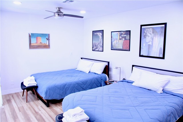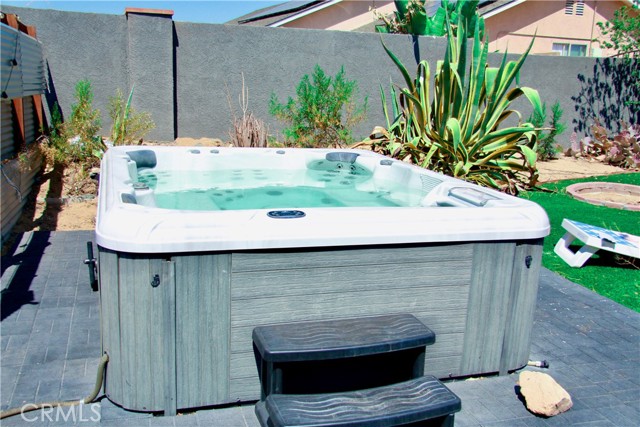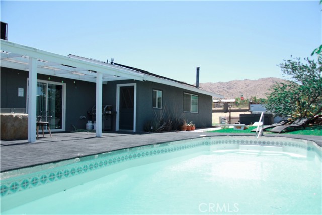 This meticulously updated and fully furnished property in Joshua Tree offers the perfect blend of modern luxury and natural beauty, making it an ideal primary residence, vacation home, or short-term rental investment. Step inside this 3-bedroom, 2-bathroom home and discover a sanctuary designed for comfort and relaxation. The fully renovated kitchen boasts quartz countertops, stainless steel appliances, and even two TVs built into the backsplash so you can enjoy your favorite shows while you cook. The large island flows seamlessly into the bright and spacious living area, complete with recessed lighting, a cozy fireplace, and expansive windows that frame the stunning desert landscape. For entertainment, there's even a fun karaoke corner. Each bedroom provides a peaceful escape with cooling fans and hardwood floors. The converted garage offers a dedicated playroom for kids, ensuring peace and quiet for everyone. Explore the indoor 3D tour to truly experience this dream setting. Situated on a spacious corner lot, the expansive outdoor space is an entertainer's dream. Enjoy the desert sun by the pool and spa, gather around the outdoor fire pit, or host dinner parties on the covered patio. The fully secure and fenced backyard provides peace of mind. This home also features energy-efficient systems, solar panels and an EV charger, adding to its modern appeal. Plus, it's just minutes from Joshua Tree National Park. With its full renovation, desirable location, and excellent revenue potential, this property is a truly remarkable investment. Don't miss this opportunity to own this turnkey desert oasis.