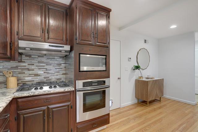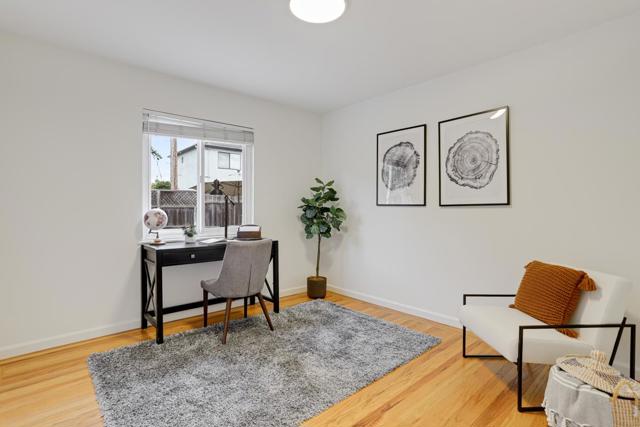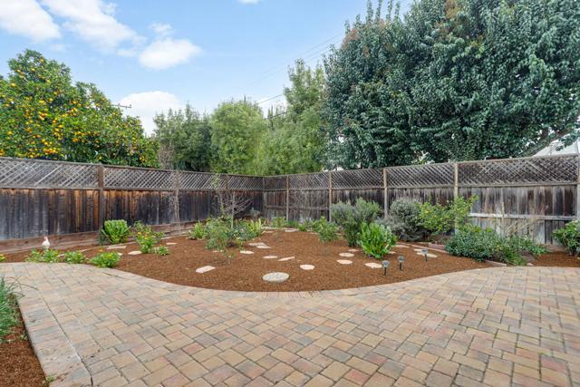Step into this bright and stylish 3-bedroom, 2-bathroom residence located on a quiet street in a wonderful Santa Clara neighborhood. As you enter, you will be greeted by an inviting, open floor plan bathed in natural light from windows and a central skylight. The home features elegant hardwood flooring that flows seamlessly into a spacious living room centered around a cozy fireplace. This bright layout transitions perfectly into a dining area and a modern kitchen boasting granite countertops and stainless steel appliances. The primary suite is spacious, complete with an extra-large closet and a luxurious attached bathroom featuring a spacious custom-tiled walk-in shower. The guest bathroom is equally impressive, updated with custom tile work, a new vanity, and modern hardware. For added convenience, the attached two-car garage includes an automatic opener, ample storage shelving, and a dedicated laundry space. Outside, the nicely sized backyard is a low-maintenance retreat featuring pavers throughout and a large storage shed, perfect for outdoor living and extra utility. Additional features include central heating and cooling, LED recessed lighting, and dual-pane windows. This move-in-ready home offers the perfect blend of style and function in a prime Silicon Valley location.