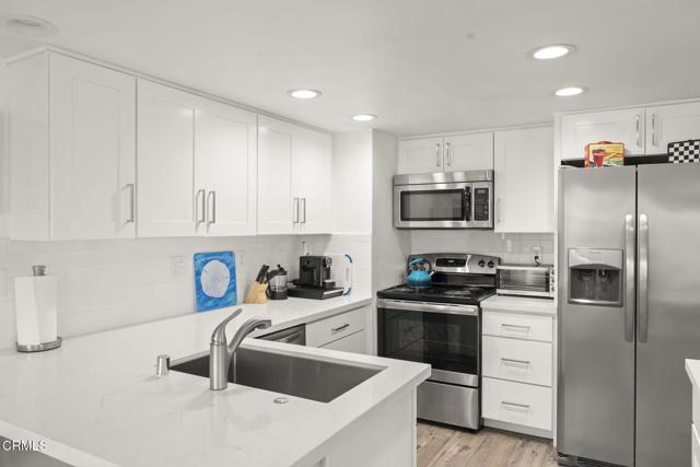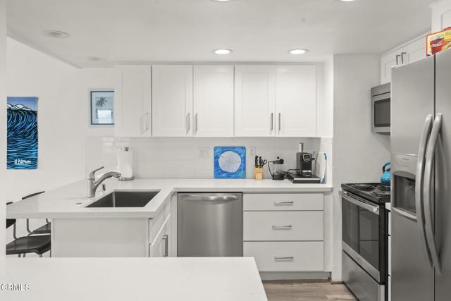 Welcome to 3464 Sunset Ln in the Harborwalk community on Hollywood Beach. Ideally located between the Pacific Ocean and Channel Islands Harbor, this property offers convenient access to beaches, marinas, waterfront dining, shopping, and the local farmers market. This remodeled condo features quartz countertops in the kitchen and bathrooms, updated light fixtures, refreshed bathroom fixtures, fresh interior paint, and coastal-inspired flooring throughout. The open floor plan provides harbor views from the kitchen, dining area, and living room, creating a bright and inviting living space. Harborwalk amenities include multiple pools and spas, tennis courts, RV/camper storage, clubhouse facilities, and on-site management. Suitable for full-time living or a second home opportunity in a desirable coastal location.