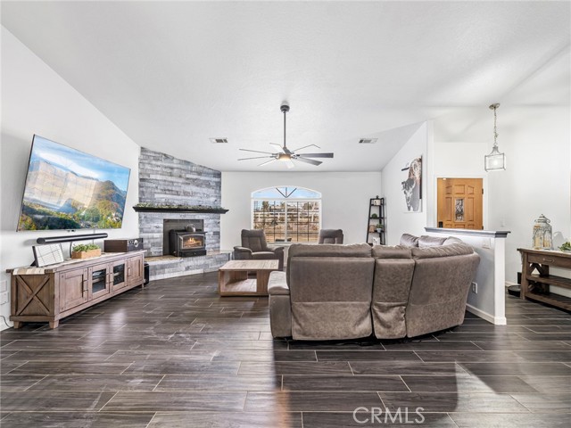 Beautifully remodeled residence featuring an impressive 3,300-sq-ft workshop/garage, plus a 3-car attached garage Set in the foothills of the Marianas, the property offers sweeping mountain views and expansive blue skies. The substantial 60’ x 55’ workshop is ideal for collectors, hobbyists or a full workshop with it's 200 AMP & 50 AMP service. The workshop includes two 14’ x 14’ roll-up doors and one 8’ x 12’ door. The open-concept floor plan is thoughtfully designed for refined living and effortless entertaining. The kitchen showcases stone countertops, abundant custom cabinetry, and a center island with breakfast bar. The spacious living area is anchored by a wood-burning stove, creating a warm and inviting ambiance. The primary suite enjoys serene mountain views and a large walk-in closet. The primary bath offers dual sinks and a generously sized walk-in shower designed for comfort and relaxation. Additional bedrooms are generously sized and feature walk-in closets. Outdoor living is enhanced by a covered patio spanning the length of the home and a manicured grassy area ideal for entertaining or unwinding.