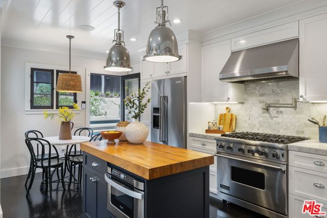 Magnificent 4 bedroom / 4 bath Spanish Revival pool home North of Los Feliz Blvd. and close to Griffith Park trailheads has been meticulously restored to offer all the modern conveniences while preserving historical details, including a Batchelder tile fireplace, exposed hand-painted wooden beams, and authentic ironwork and magnesite stairs. Modern upgrades include Sonos music system, 4 camera security system, an automatic gate and garage door that can be remotely controlled, and Nest thermostat. The sparkling salt-water pool & hot tub were added in 2020 and are surrounded by lush green outlooks and beautiful architecture. The hand-painted Talavera tile at the waterline and on the stairs near the pool and the private gardens add to the ambiance. The locking automatic safety cover keeps the pool warm and people and pets safe. Enjoy a relaxing swim because the pool equipment is in the garage - no noise around the pool! Turn on the hot tub on the way home from your phone for immediate relaxation. Los Feliz, Atwater Village and Silver Lake shops and restaurants are all close by as is the Greek Theater. Other features of this home include a light-filled primary suite with spa-like bathroom and two walk-in closets, both a formal living and dining room, and a basement that is perfect for a home office and den. Parking is easy with a detached 2-car garage with 220v behind an automated gate, Comfortable modern convenience while maintaining the scale, beauty, and nostalgia of old Hollywood, this is a truly special home that you won't want to miss.
