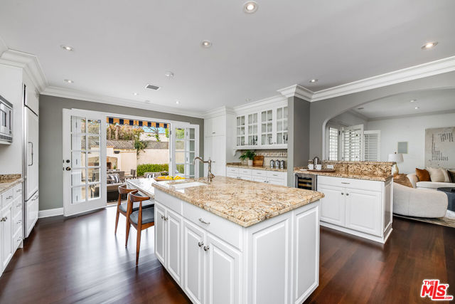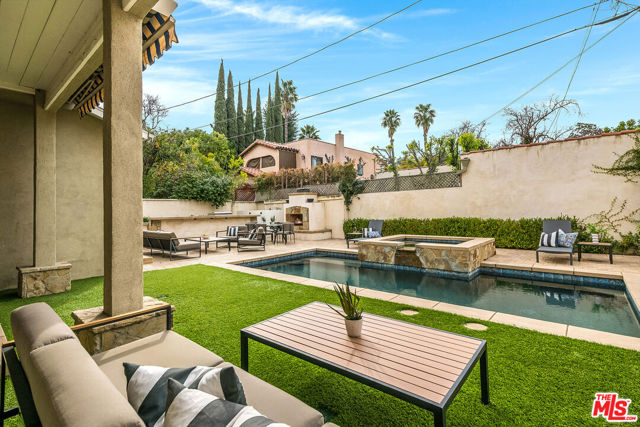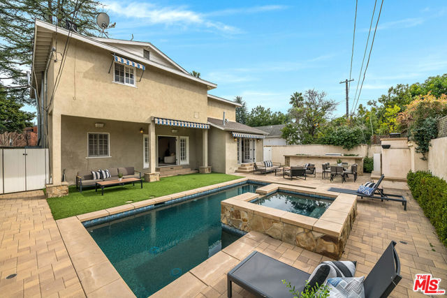 This refined Toluca Lake 4 bed & 3 bath plus bonus space residence blends relaxed coastal influence with polished sophistication. Sun-drenched interiors and a versatile floor plan are thoughtfully designed for modern living, whether hosting, working from home, or unwinding. The main living areas connect seamlessly, flowing from an inviting living room with fireplace to an elegant dining space and into a spacious great room centered around a chef's kitchen. The kitchen showcases granite countertops, a striking dual-level island, and premium appliances including a Sub-Zero refrigerator, Viking six-burner range, and Miele dishwasher.A main-level bedroom or home office paired with a full bathroom featuring a classic clawfoot tub offers flexible living options. French doors, plantation shutters, and Brazilian cherry hardwood floors add warmth and character throughout. Upstairs, the expansive primary suite serves as a true retreat with a private balcony, walk-in closet, spa-inspired bath, and an adjoining lounge ideal for a fitness studio, office space or private sitting room. Two additional generously sized bedrooms, a full bathroom, and a dedicated laundry room complete the upper level, providing a well-balanced and functional layout. The newly designed backyard delivers a resort-style experience with a sparkling pool and spa, stone patios, fireplace, and a fully equipped outdoor kitchen with bar seating, perfect for entertaining or enjoying everyday relaxation.Ideally located just moments from the Toluca Village: new Gelson's Market, Trader Joe's, Bob's Big Boy, and Priscilla Coffee, with close proximity to Warner Bros. Studios, NBC Studios, and Lakeside Golf Course, this home offers the very best of Toluca Lake living. Ready to welcome you home!!!