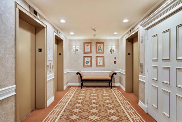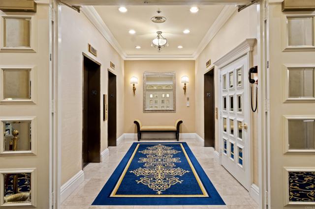 Residence 2102 is one of only two penthouse-level homes at Pacific Regent La Jolla, a premier 62+ independent living community. Extensively renovated in 2017, this 2BR 2.5BA property offers 2,324 sf of well-planned living space and features oversized arched windows, high-quality finishes and two private corner terraces, taking full advantage of unobstructed views of the Pacific Ocean, Mount Soledad and the city. The home has earned recognition in multiple design publications, including San Diego Home/Garden Lifestyles magazine. The living area features soaring ceilings and numerous windows that capture wide 180-degree views. The space works equally well for everyday living and entertaining and includes a stacked-stone fireplace, built-in cabinetry, a wet bar and luxury vinyl flooring throughout. The kitchen and dining areas were thoughtfully designed with coordinated glass tile, Bosch appliances, dark wood cabinetry and high-end materials. A custom banquette with an oval glass table creates a comfortable breakfast nook and connects naturally to the sunroom and a guest bedroom. Secluded in the northwestern wing for added privacy, the primary suite includes a large cedar-lined walk-in closet and an ensuite bath. The bathroom features Mohave quartzite counters, dual sinks, a glass-enclosed shower and a stone-encased soaking tub. The suite offers north- and west-facing views and opens directly to an approximately 200 sf private terrace, ideal for quiet mornings or breathtaking Southern California sunsets. The guest bedroom features a full bathroom with a walk-in shower, LVP flooring and built-in cabinets and quartzite desktop. It also offers direct access to an enclosed patio/sunroom. Additional features include a dedicated laundry room with side-by-side washer and dryer and a generous private storage room exclusive to this penthouse. Pacific Regent La Jolla consists of 148 condominiums and offers resort-style amenities including 24/7 concierge and security, weekly one-hour housekeeping service, a heated indoor pool and spa, an on-site gourmet restaurant, a fitness center, a library, a beauty salon and an outdoor lounge. Residents enjoy a full calendar of scheduled activities such as book clubs, Mahjong and Bridge clubs, daily movie nights, beach walks and cultural outings. The building includes a private parking garage with EV charging stations, complimentary valet parking for residents and guests and scheduled transportation to medical centers, markets and local attractions. Monthly HOA dues cover all utilities, high-speed internet, cable TV, landline service, water, trash and common area maintenance. Pacific Regent La Jolla is located near the UCSD medical campus, Westfield UTC shopping center, the Blue Trolley line and La Jolla beaches. It also offers convenient access to the 805 and 5 freeways. Grocery stores, banks and other daily conveniences are only a short distance away. Residence 2102 presents a rare penthouse opportunity in one the most established luxury independent living communities.
