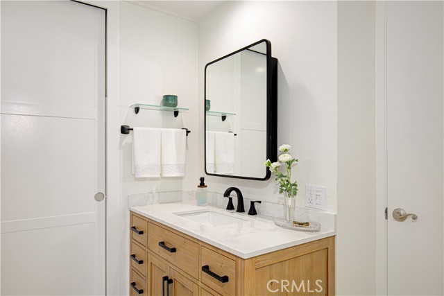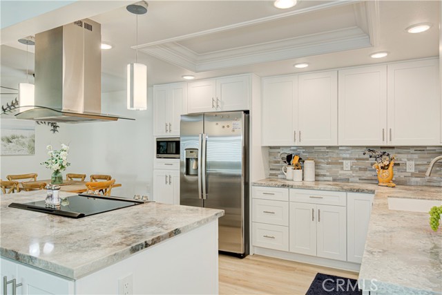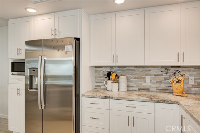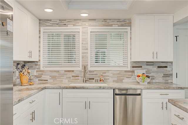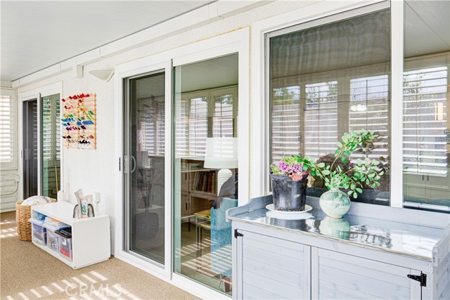 Beautifully remodeled ground level Casa Contenta with absolutely NO STEPS comes complete with an enclosed patio to envy. Nestled in a premium area of the community known as Nob Hill & close to Aliso Creek. As you enter through a lovely new door with lead-glass insert you will immediately notice the designer upgrades & luxurious appointments in this stunning home. The kitchen is a chef’s delight featuring a center island that includes cabinets on both sides, gorgeous quartz countertops, designer tile backsplash that extends to the ceiling, stainless steel appliances including a combination microwave/air fryer/convection oven, soft close cabinets & drawers, recessed & pendant lighting. The main living area is designed for comfortable living and proves an inviting floor plan for entertaining as well. Access the fully enclosed patio from the living room, guest bedroom or the door that leads out to the front of the home. The patio features plantation shutters on the windows & a wall air conditioning unit for your comfort. The Master Suite is spacious, can accommodate your king size furniture nicely, features his & hers closets with mirrored doors, a separate closet in between with shelving plus another closet next to the vanity to maximize the storage. The Master bath has been redesigned enlarging the shower featuring custom tile & a shampoo niche, new vanity with quartz countertop & an inside laundry closet housing the high-end LG washer/dryer. The ample secondary bedroom has also been redesigned to enhance the space & maximize storage. Your guest with appreciate their own bath right across the hallway. Other features of this meticulously maintained home are Energy Efficient Heating/Cooling systems in each room, Luxury Vinyl Flooring throughout & Dual Pane Windows. The carport is conveniently located just down the walkway; it has upper and lower cabinets providing extra storage. Make this lovely home yours and start enjoying all the amenities of Laguna Woods Village! Senior Living at its Finest ~ With 7 Clubhouses, 5 Pools, 2 Fitness Centers, 10 Tennis & Pickleball Courts, Private Library, 2 Professional Golf Courses, Private Restaurant & Lounge, Equestrian Center with Stables, 10 Craft Workshops, an 814 seat Auditorium/Theater, the list goes on. In addition, there are over 200 clubs & organizations providing an enjoyable & diversified opportunity for everyone. Just minutes from World Class Beaches, Restaurants, Shopping, Entertainment & Easy Freeway Access