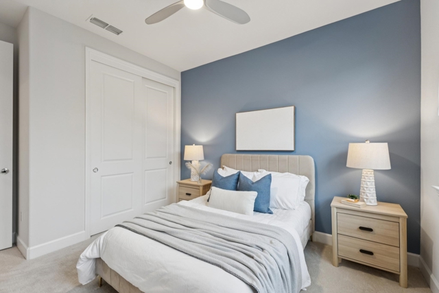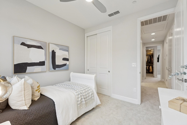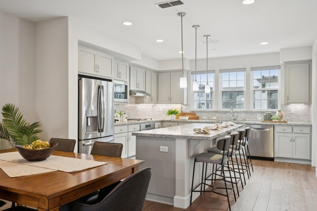 Newer East facing townhouse-style condo in the Andares community by Summerhill Homes is perfect for today's lifestyle. Built in 2018, this modern residence offers over 1950 sq ft of thoughtfully designed living space, with 4 bedrooms and 3 ½ baths. Gleaming hardwood floors and a ground level bedroom suite is perfect for guests or an office. The open-concept kitchen, dining area, and living room create a seamless flow, ideal for entertaining and everyday living. The sunny kitchen is a chef’s dream, with stainless appliances, gas range/oven, walk-in pantry, and a huge center island making meal preparation a breeze. A viewing balcony and convenient powder bath complete the middle floor. Upstairs you will find the luxurious primary suite, with an inviting bath with step-in shower and dual vanity, along with a spacious walk-in closet with organizers. Two additional large bedrooms, a full bath, and a laundry area complete this level, offering ample space for family and guests. There is a 2 car garage wired for EV charging with abundant storage and tankless water heater. This quiet complex is located within walking distance of Hart Middle School, with convenient access to freeways, BART, and shopping. Welcome home!