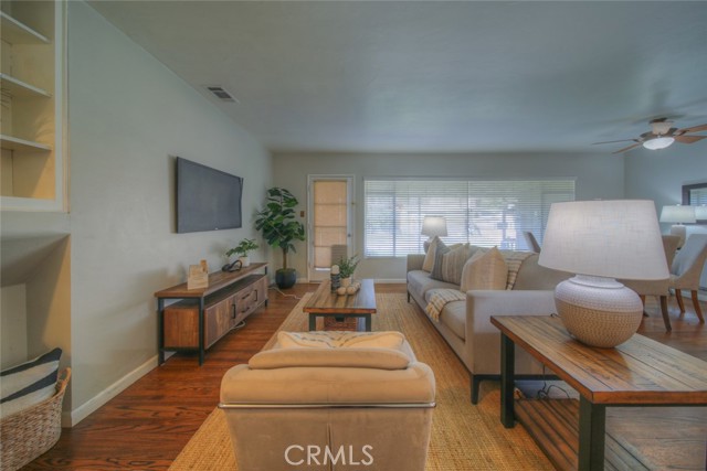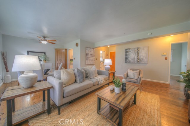 Charming and full of character, this lovingly maintained Banning home reflects true pride of ownership at every turn. Beautiful hardwood floors run throughout the home, complemented by fresh interior paint and large picture windows that fill the space with natural light. The kitchen was tastefully updated approximately five years ago, blending modern convenience with timeless style — ideal for both everyday living and entertaining. Thoughtful improvements include a newer roof, updated forced air heating and A/C system, and dual-pane windows for enhanced comfort and energy efficiency. The spacious circular driveway adds excellent curb appeal and ample parking. Step into the generous backyard where mature citrus trees, garden space, and covered patios create a welcoming setting to relax or host gatherings. With no HOA and low property taxes, this home offers both freedom and affordability — a rare combination that adds even more value. A well-cared-for property blending classic charm with meaningful updates, this is truly one you won’t want to miss.