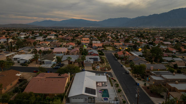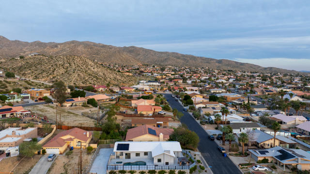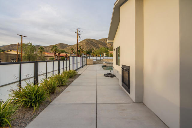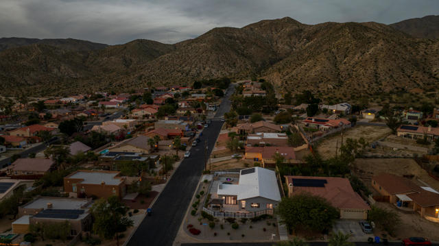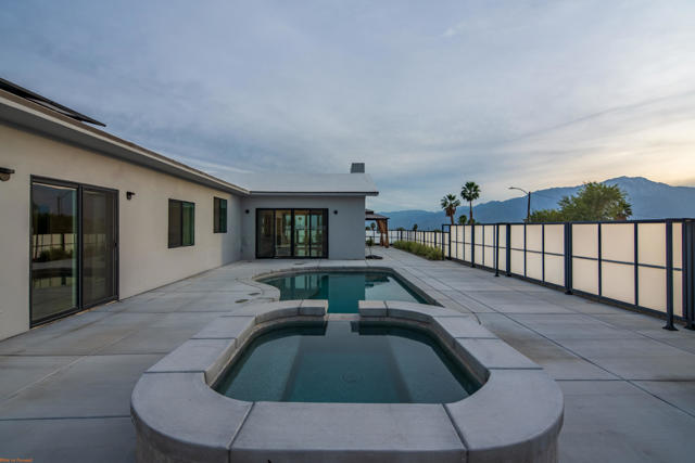 🔥 HOT PROPERTY PRICED TO SELL! STUNNING MOUNTAIN VIEWS AND PARKING! NO HOA! 🔥 One of a kind corner lot newly constructed single story home on an elevated lot offering privacy, breathtaking mountain views, and direct access to nearby hiking trails. Enjoy panoramic sunset views right from your backyard oasis. The property is fully enclosed with a sleek modern privacy gate system all around and features a long driveway with ample space for multiple vehicles, trailers, or toys. Inside, enjoy an open concept layout with beautiful tile flooring, recessed lighting, and an indoor/outdoor fireplace perfect for entertaining. The gourmet kitchen features quartz countertops, a large island with abundant storage, stainless steel appliances, and seamless flow into the dining area. Step outside to your heated pool and spa all set against stunning mountain views. The luxurious primary suite offers direct pool access, dual closets including a walk in, and a spa style bathroom with soaking tub, walk In shower, and dual vanities. Two spacious guest bedrooms each include walk in closets. With paid off solar, fire sprinklers, zoned heating, and a two car garage, this home blends luxury, privacy, efficiency, and unbeatable views. Modern. Private. One of a kind, Close to hiking, Move in ready, Priced to sell, Short Term Rental make your dreams come true! Schedule your private showing today. 760-895-5647
