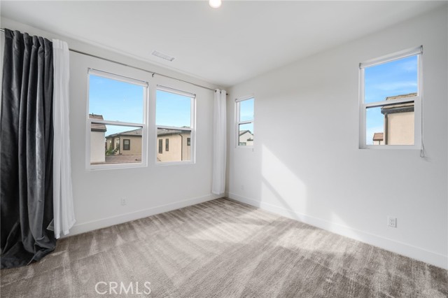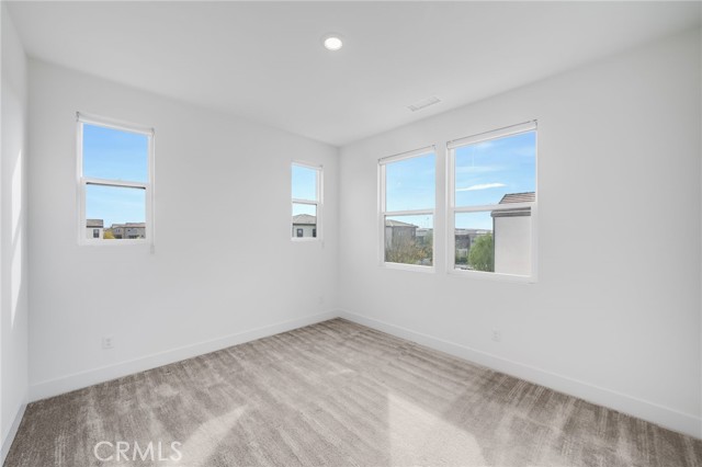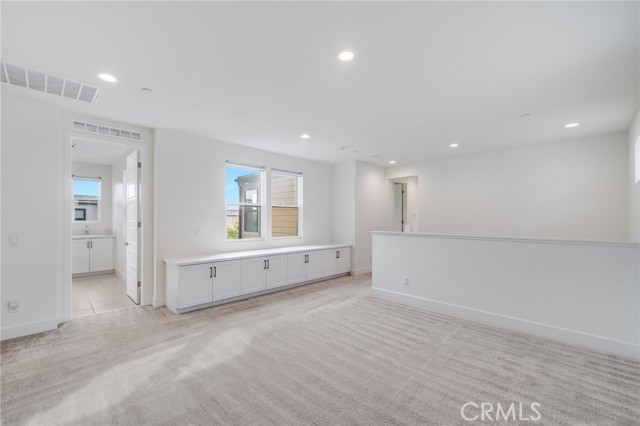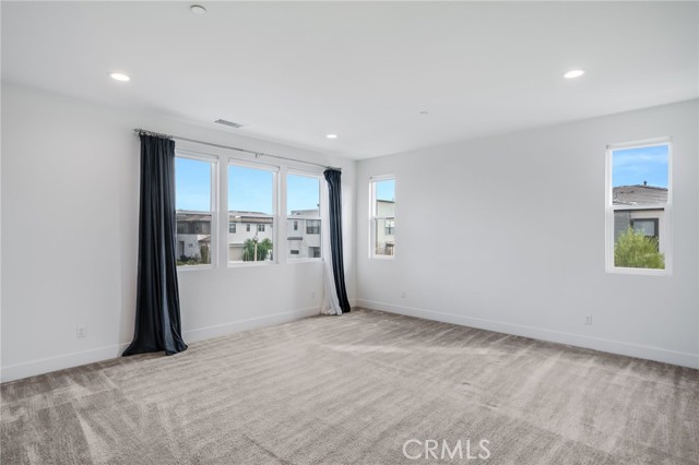 Corner Unit Detached Two-Level Home with paid-off solar panels in Rise Park at Great Park, Irvine! This beautifully designed 5-bedroom, 4.5-bathroom home features a bright, open-concept layout. The living room opens to the front yard through sliding glass doors, allowing for abundant natural light. The kitchen is equipped with an upgraded stove with ambient lighting, a built-in refrigerator, and a pantry with a prep counter. The first floor offers a private bedroom suite and a powder room. Upstairs, you’ll find a spacious loft with built-in cabinets and a large primary suite complete with a private balcony. Secondary bedrooms are well-lit and share two full bathrooms. Residents enjoy access to Great Park amenities, including parks, trails, pools, and sports facilities, as well as the award-winning Irvine Unified School District. Conveniently located within walking distance to Solis Park School and Portola High School.