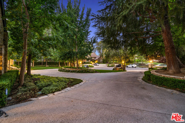 Set behind the exclusive gated community of Medea Valley Estates, 29105 Old Mill Creek is one of those properties that rarely comes along. Set at the end of a quiet cul-de-sac on over 1.8 usable acres, this 11,000+ square foot estate offers privacy, scale, and a creative edge that makes it feel truly custom.The design embraces volume and light, with massive windows, French doors, and skylights bringing in natural light throughout. A formal entry sets the tone and leads into a striking living room centered around warming fireplace and wall of French windows framing views of the parklike backyard and pool, creating a seamless connection to the outdoors. The formal dining room is built to host. Generous in size with elegant proportions, it easily accommodates large gatherings while still feeling intimate for smaller dinners. Positioned to flow naturally from the main living areas and kitchen, it's a space that works just as well for holidays and celebrations as it does for everyday meals. The chef's delight kitchen is outfitted with top-tier professional appliances, custom cabinetry, marble countertops, and an expansive butler's pantry. The chef's kitchen opens to a sunlit great room boasting a breakfast area and adjoining game room. A standout custom office adds personality, complete with a professional bar, floor-to-ceiling brick fireplace, and a built-in seating area ideal for meetings or evenings with friends. For elevated entertainment, the home features a professional media room designed for a true cinematic experience. Tiered seating ensures every seat has a perfect view, while French doors allow the space to open for larger gatherings or remain closed for an immersive movie night. The main-level primary suite is both dramatic and serene, with soaring ceilings, fully customized designer closets, and a spa-caliber bath featuring a multi-head steam shower,separate soaking tub and dual water closets. The backyard is where the property truly separates itself. Expansive lawns, mature Oaks, and multiple entertaining areas surround a sparkling pool and spa. A lighted sports court offers space for year-round recreation, while the natural creek running along the back of the property adds privacy and a peaceful, scenic backdrop. It feels like your own private park usable, secluded, and hard to replicate. A must see, you won't be disappointed.