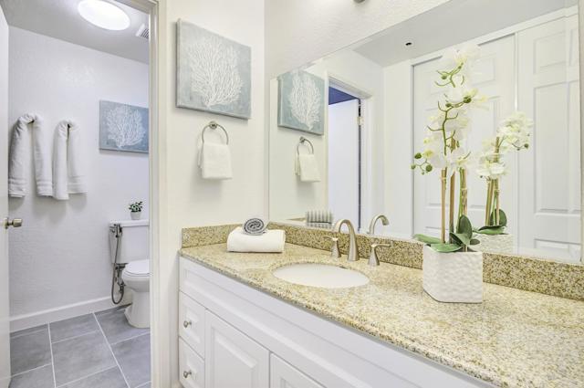 Gorgeous Lakeview Terrace condo nestled among peaceful outdoor spaces. Open floorplan with two spacious primary bedrooms, each with fully remodeled baths, one with a deep soaking tub, the other a custom-built shower. Updated kitchen features soft close cabinets, stainless steel appliances, and quartz countertops. Plank floors, white brick fireplace, and bright east-facing windows create a warm, inviting atmosphere. In-unit washer/dryer, upgraded electrical panel, and assigned garage parking complete the home. Step outside to a serene patio with storage, community pool & hot tub, scenic paths, and direct access to Almaden Lake Park with playgrounds, bocce courts, and trails. Conveniently located near Oakridge Mall, Whole Foods, Trader Joes, Costco, TJ Maxx, many restaurants, and more, with easy access to HWY 85 and 87 for an effortless commute. Comfort, nature, and convenience all in one home. Schedule a visit today!
