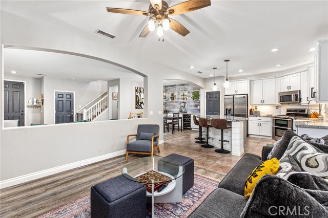 Welcome to this beautiful Canyon Hills’ home, where thoughtful upgrades, smart design, and everyday comfort come together in all the right ways. From the moment you arrive, you can feel the pride of ownership. Step inside and you’re greeted by an open, light-filled floor plan that immediately feels inviting and functional. The kitchen truly anchors the home, featuring a large island, granite countertops, stainless steel appliances, and generous space to gather, whether it’s casual weeknight dinners or hosting friends and family. The living area flows seamlessly, creating a space that feels connected, comfortable, and easy to live in. Upstairs, you’ll find spacious bedrooms plus a versatile loft that can easily serve as a 4th bedroom, home office, gym, or media room. The primary suite offers a private retreat with a walk-in closet and a well-appointed bath designed for relaxing at the end of the day. With laundry conveniently located upstairs, the layout simply makes sense. Step outside and you’ll see what truly sets this home apart. The backyard is designed for real life — low-maintenance turf, a covered patio for shade, and a built-in fire feature that turns ordinary evenings into something special. It’s not just a backyard that photographs well, it’s one you’ll actually enjoy all year long. Living in Canyon Hills means more than just owning a home. Residents enjoy access to multiple pools, a splash pad, clubhouse, parks, and miles of scenic hiking and biking trails. Top-rated schools, shopping, and commuter access are all nearby, making this location as practical as it is desirable. Homes like this don’t just check boxes, they create lifestyle. Clean, upgraded, move-in ready, and positioned in one of the area’s most sought-after communities, this is an opportunity you won’t want to miss.