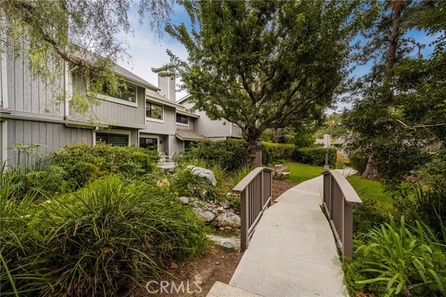 Nestled in the scenic hills of Orange, this exceptional townhome offers the rare opportunity to live in the highly sought-after Chapman Townhomes community, where resort-style amenities and tranquil surroundings create an unparalleled lifestyle. Residents enjoy access to a sparkling pool and spa, tennis and pickleball court, and beautifully maintained walking paths accented by ponds, waterfalls, charming bridges, and meandering streams. Ideally positioned in a prime interior location, this bright and inviting home features an open-concept floor plan designed for both comfort and entertaining, including a spacious living room with a cozy fireplace and a kitchen with a convenient breakfast bar that flows seamlessly into the dining area. Sliding glass doors open to a serene private patio overlooking a picturesque stream, creating the perfect setting for relaxing evenings or hosting guests amid lush landscaping and the soothing sound of running water. The expansive primary suite is filled with natural light and features vaulted ceilings, mirrored closet doors, and a generous dressing area complete with dual sinks and abundant storage. The secondary bedroom is also generously sized with ample closet space, and both bedrooms enjoy peaceful views of the bubbling stream and surrounding greenery. Additional highlights include a two-car garage with direct access and built-in laundry facilities, as well as nearby guest parking for added convenience. Located just minutes from premier shopping, dining, major freeways, and toll roads, and with close proximity to Peters Canyon Regional Park, Irvine Regional Park, and Santiago Oaks, this home offers exceptional access to both everyday conveniences and outdoor recreation. This is a rare opportunity to own a beautifully situated residence in one of Orange’s most desirable communities.