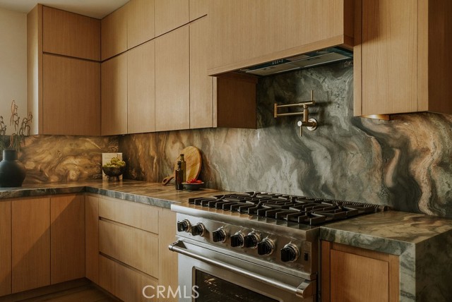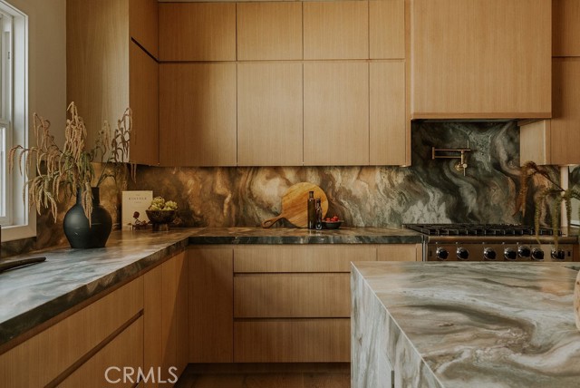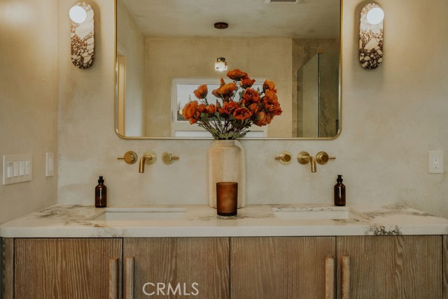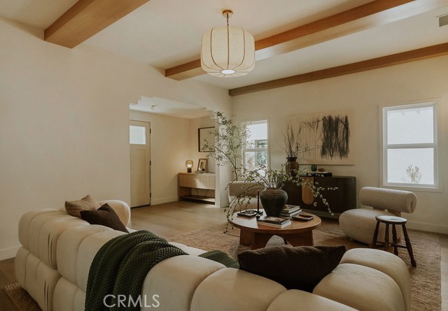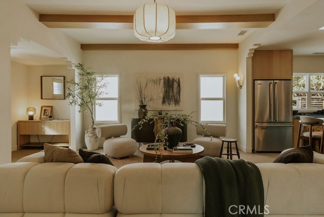 Re-crafted by HELMD Development, this 4 bedroom, 3.5-bath residence spanning approximately 1,797 square feet embodies a thoughtful, design-forward vision, creating a natural flow throughout. The result is a home that feels composed, where textures converse and tones carry through with quiet confidence. Upon entry, the open layout reveals the living and kitchen spaces in one seamless view, naturally guiding your eye from the organic light fixtures to the distinctive stone that anchors the kitchen as the centerpiece. White oak floors create a soft, natural backdrop, mirrored in the ceiling beams and white oak cabinetry for a layered and cohesive feel. The kitchen showcases natural quartzite counters defined by veining movement and a rich, earth-toned palette, paired with Viking appliances and streamlined millwork. Each lighting choice through the home adds a refined presence, carrying a consistent feel from room to room. Rich Roman clay plaster, paired with linen sconces and an arched brass center pendant, brings depth and texture to the dining room, setting a moody, intimate tone with a subtle speakeasy feel. Linen fixtures extend into each bedroom in varying forms, keeping the look soft and balanced. The spacious primary suite is defined by a pleated pendant. While each bathroom carries its own distinct character, layered in unique tones and finishes, remaining aligned with the home’s overall aesthetic. Outdoors, the landscaping reflects the same intentional approach, beginning with a deck that flows down to a gravel seating area and manicured lawn, creating an ideal setting for entertaining or a relaxed outdoor getaway. A special home that speaks for its self, located in the heart of Del Ray, just minutes from the beach, shops, and restaurants, this residence delivers one of the best lifestyles Los Angeles has to offer.
