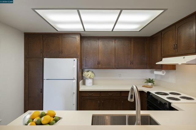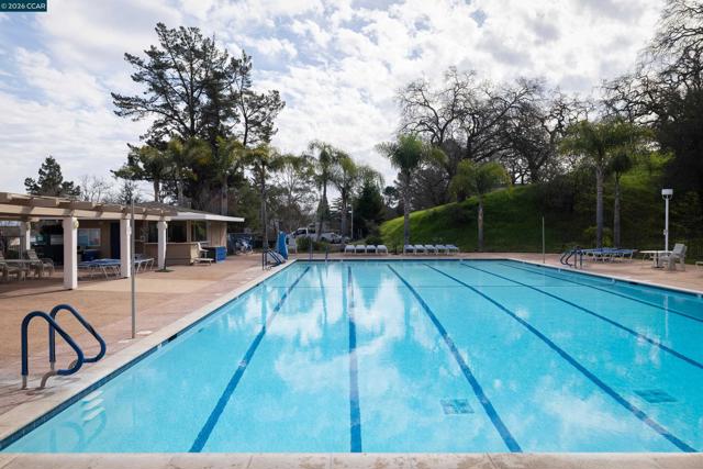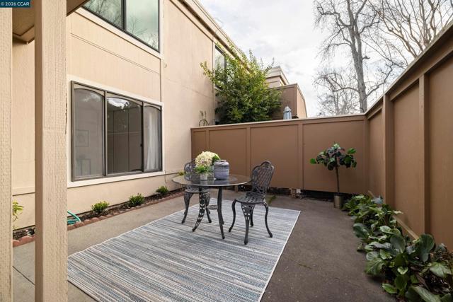 This popular Carmel layout offers a bright & open floor plan & boasts new stone composite core flooring & plush carpets, freshly painted interior, updated kitchen & bathroom & two private, spacious & shady patios. As you enter the home, the entire space is filled with abundant natural light. The kitchen offers a versatile breakfast bar with generous counter space & cabinets for storage & comes complete with refrigerator, oven & stove top & dishwasher, making cooking & entertaining a delight. The open kitchen overlooks the bright & cheery dining room with modern chandelier & seamlessly flows into the spacious living room with a wall of sliding glass doors that lead out to the private back patio with stunning views of the Mt Diablo Hills. The bedrooms are both airy & bright with a full wall of large windows in each room allowing natural light to fill the space & provide stunning views day or night. The full bathroom includes new vanity counter & sink, updated lighting, an expansive linen closet and a spacious shower over tub combo. There is also an additional coat closet in the hallway for more storage space. The Carport includes large parking space (#5) near unit and a secure & spacious closet & double door cabinet to allow for more even more storage.