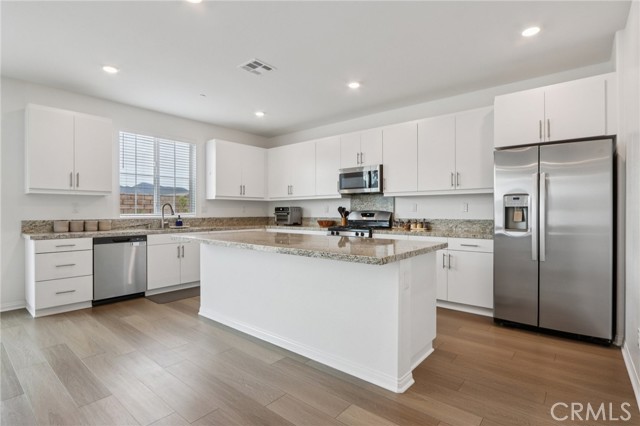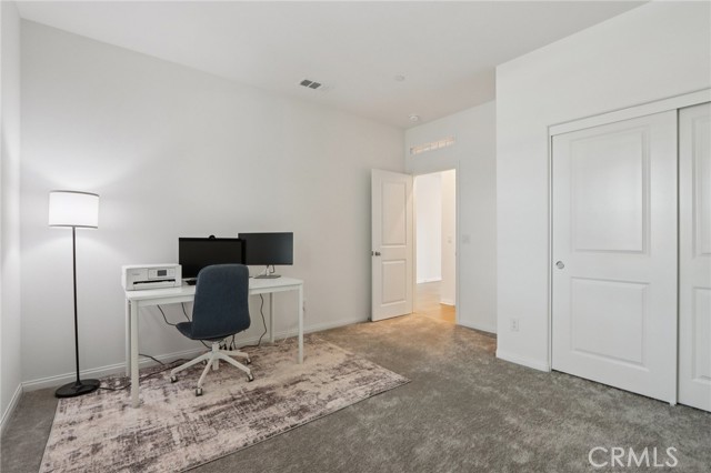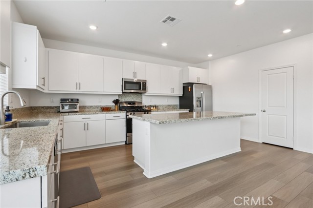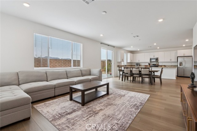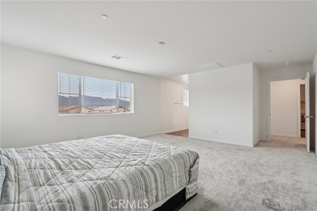Exceptional Saddlepoint home featuring an immaculate like-new interior, mountain views, and main-level bedroom and full bath. Go inside to a bright, fresh space featuring crisp white walls, blonde LVP flooring on the main level, and plush carpeting upstairs. The open-concept living, dining, and kitchen areas create a seamless flow ideal for both everyday living and entertaining. The kitchen is beautifully appointed with stainless steel appliances, ample cabinetry, a pantry, and a large center island that offers generous prep space and casual bar seating. Upstairs, a spacious loft provides flexible space for a media room, office, or play area. You’ll also find three well-sized bedrooms, two bathrooms, and a convenient upper-level laundry room. The oversized primary suite is complete with an expansive walk-in closet—nearly the size of a small bedroom—and an en suite bathroom featuring a dual-sink vanity. Enjoy outdoor living in the backyard patio area with peaceful mountain views, while the front of the home offers great curb appeal with low-maintenance hardscaping and drought-tolerant landscaping. Additional highlights include a direct-access 3-car garage and leased solar for energy efficiency. Residents of Saddlepoint enjoy access to HOA amenities including a beautiful pool and spa, playground, and clubhouse—all in a well-maintained community setting.