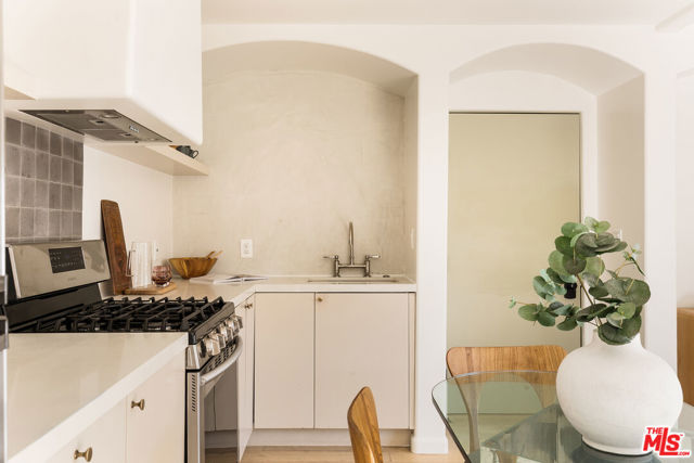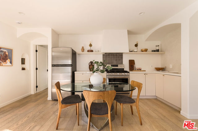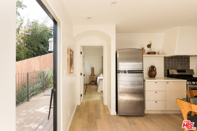 Welcome to "Casa Larissa," a 1920s Spanish residence located at 3200 Larissa Drive in a prime pocket of Silver Lake just above Sunset Boulevard. Re-envisioned by Studio Cadiz and fully updated in 2020, the home blends original architectural details with modern upgrades. White oak flooring and curved arches define the interiors. The custom kitchen features quartz countertops, brass fixtures, and a Cle tile backsplash. A Juliette balcony captures views of the surrounding hills, while the living area opens through French doors to a private Ipe wood deck with wrought iron railings. The bathroom showcases Arto tiles and smooth stucco walls. Additional features include in-unit laundry and updated heating and air conditioning. Located moments from Sunset Boulevard, you're close to Pine & Crane, Night + Market Song, Intelligentsia Coffee, Bacari Silverlake, and the path around the Silver Lake Reservoir. Set within a quaint four-unit property with shared terraced grounds and city views, this residence offers a rare combination of architectural character, thoughtful design, and an exceptional Silver Lake location.