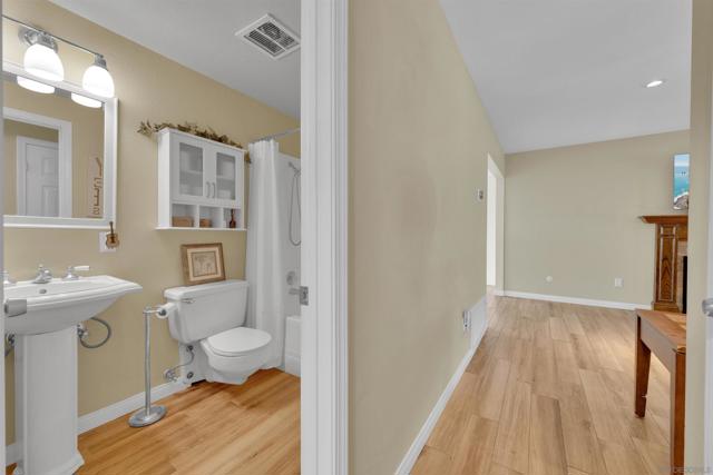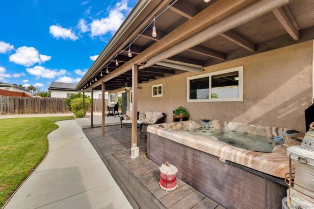 Beautifully maintained 3-bedroom, 2-bath Poway home with a brand-new kitchen and backyard retreat. This 1,089 sq ft home truly shows pride of ownership and has been very well cared for over the years. The living room is warm and inviting, featuring a cozy fireplace that’s perfect for relaxing. The home boasts a brand-new kitchen with modern finishes and all-new appliances, and beautifully updated bathrooms. Porcelain flooring, new dual-pane windows, and upgraded deck and patio areas add both style and comfort. Owned solar panels help with energy savings, and the 2-car garage provides plenty of storage and parking. A standout feature is the gated, fenced parking for a 40-ft RV — a rare find in this area. The backyard is designed for entertaining and everyday enjoyment, with a covered patio, grassy area, hot tub, and a mature orange tree. Located in a wonderful, family-friendly neighborhood near parks, shopping, and top-rated schools, this home is move-in ready and perfect for enjoying all that Poway has to offer.