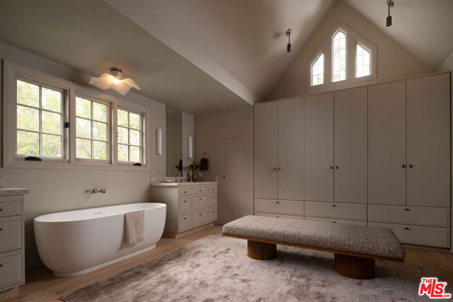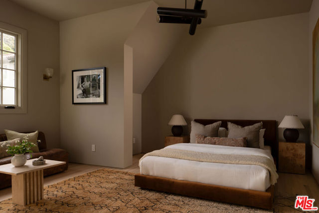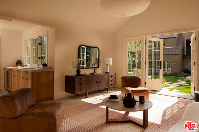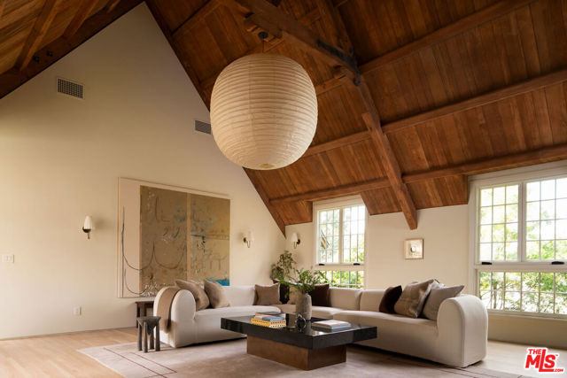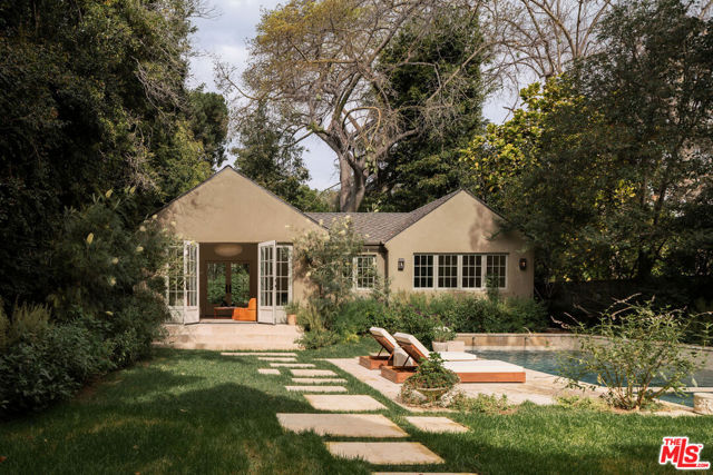 Set behind the private gates of Laughlin Park, one of Los Feliz's most coveted enclaves, this elegantly reimagined residence offers a timeless blend of artful craftsmanship and thoughtful design. Spanning over 4,600 square feet across a main house and guest house, the property has a masterful layout where each space flows effortlessly into the next, marked by warmth, intention, and ease. Inside, richly layered interiors reveal natural stone flooring, accordion-style doors, and curated finishes that speak to understated luxury. Oversized windows bathe the home in natural light, illuminating expansive yet inviting living spaces. The chef's kitchen features custom cabinetry, marble countertops, and top-tier appliances, offering both style and function. Upstairs, the formal living room, anchored by a stately fireplace and dramatic beamed ceiling, sets the tone for elegant entertaining. The primary suite serves as a private retreat, serene, spacious, and refined with a large walk-in closet and dressing area, balancing the home's original character with modern comfort. Step outside to a private sanctuary. High hedges and layered landscaping create a tranquil backdrop for the glistening pool, with a seamless connection to the exceptional guest house. Just moments from Griffith Park and the vibrant eateries and shops of Los Feliz, this architectural gem offers a rare combination of sophistication, privacy, and authenticity in one of L.A.'s most desirable neighborhoods.