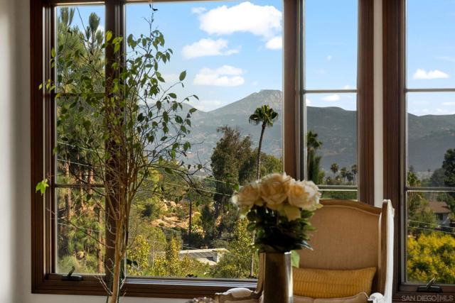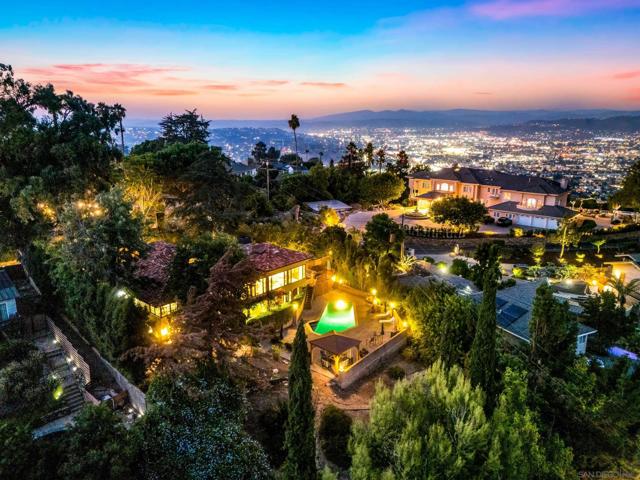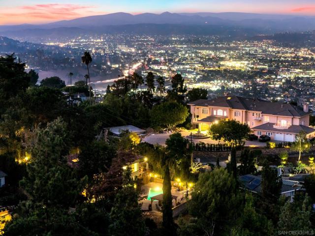 Sellers are under contract on another property. Property is priced to fly! Magnificent Tuscan Villa with endless Southeastern mountain vistas, perched on a tucked away cul-de-sac on highly sought after Mt. Helix. This two-story, 4,064 sf 4 bed/3 bath estate is situated on a half-acre usable lot, adorned with lush landscaping that provides shade and privacy. Copper clad wooden gates lead you under a grand stone wrapped entryway, through distressed Alder wood doors. Past the foyer you enter the picture perfect formal living room with exposed hand carved beams and arched ceilings. Giant picture windows in the living room and adjacent family invite endless views of trees and rolling mountains as far as the eye can see. Dual wood burning fireplaces in the Living room and Family room. Serene outdoor deck spaces, shaded by towering hundred year old trees that you never knew existed in San Diego County. Granite counter kitchen and elegant neighboring formal dining room. Four large bedrooms including a lower level private primary retreat with walk-in closet, large en-suite bathroom, wood burning fireplace and private outdoor space. Resort style pool with large paver deck with gazebo, fire pit and lounge seating areas galore. Incredible entertaining potential for family and friends, and plenty of space to build a guesthouse/ADU. The amount of charm and timeless architectural detail in this incredible estate simply must be seen to truly appreciate. Offering total privacy without feeling secluded, located just minutes away from the 8 Freeway. This home is truly special in every way.