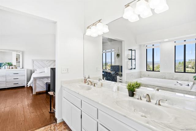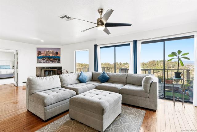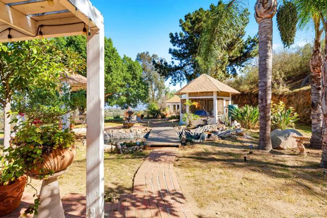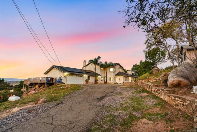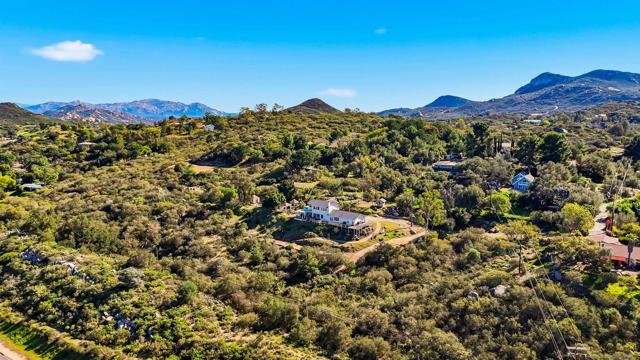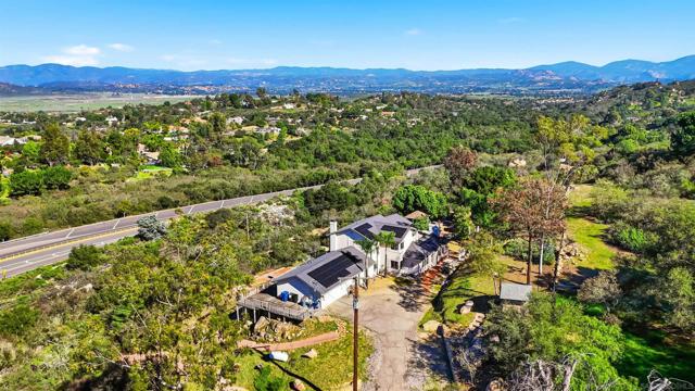 Situated on 4.86 ACRES, with an impressive Contemporary Ranch-Style Home. The property is situated on the West End with fabulous panoramic mountain views of Ramona just off Mt. Woodson. The large Master Suite includes a six-jet spa tub, a walk-in closet and improved marble bathroom with an oversized walk in shower, and French doors leading to the outdoor wrap around deck to enjoy the spectacular Views. Enjoy the Mature apricot, pomegranate, two lemon, bay leaf and a handful of lavender, citronella trees throughout the property. The kitchen includes a newer GE Monogram convection double oven. Recessed lighting throughout, and the majority of windows have been upgraded. Enjoy two fireplaces in both the formal living room and family room, all while hosting your guests with an open kitchen concept. Included are six sliding doors to enjoy the breathtaking views with an abundant amount of natural lighting throughout the home. There is a serene and breathtaking sunrise and sunset view just right off the outside deck with a Koi pond. There is much more potential for development and an expansive amount of usable land to include, whether your looking to build several ADUs, Casitas, or your very own customized pool oasis and as a forever multi-generational opportunity!