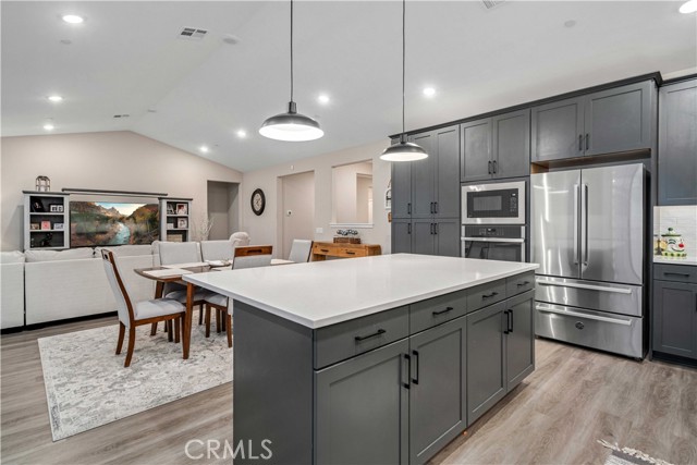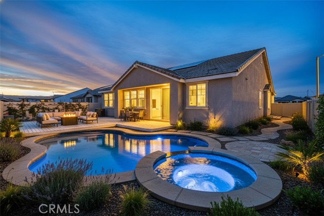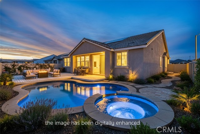 ***LIVE BEAUTIFULLY*** Welcome to this newly built modern home in Lancaster featuring extensive upgrades and a functional open-concept layout. The home offers a desert landscaped front yard and a spacious backyard with room to entertain or customize to your needs. The large family room opens to a gourmet upgraded chef’s kitchen showcasing vaulted ceilings. Stainless steel appliances include a large apron front sink, hood range, and double oven. The kitchen also features custom quartz countertops, upgraded cabinetry, and a large center island, creating both style and functionality for everyday living and entertaining. A private in-law suite with its own separate entrance includes a kitchenette, bedroom, bathroom, and living area, ideal for multi-generational living or guests. The expansive primary suite features tray ceilings and crown molding, while the en-suite bathroom offers a soaking tub, dual vanities, and a massive walk-in closet. Upgraded flooring and recessed lighting are featured throughout the home. Property includes a solar lease, HOA with monthly dues, and Mello-Roos.