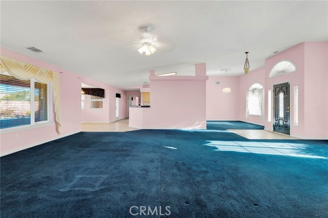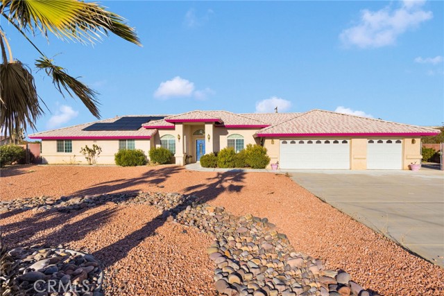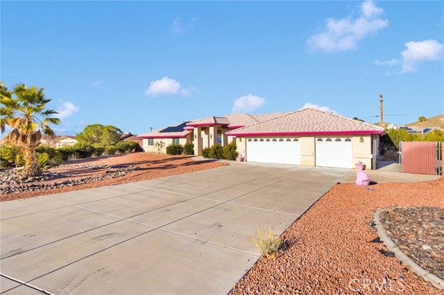 Spacious, well-maintained single-story home offering 4 bedrooms, 2 bathrooms, and nearly 3,000 square feet of comfortable living in Apple Valley. This thoughtfully designed floor plan features expansive living areas, an open kitchen with generous counter space, and abundant natural light throughout. The primary suite includes a large bathroom with dual sinks, soaking tub, and separate shower, while additional bedrooms are well sized and flexible for guests, home office, or multi-use space. The home reflects pride of ownership with a clean, well-kept interior and durable finishes throughout. Step outside to a generously sized backyard highlighted by an oversized covered patio, ideal for outdoor living, entertaining, or relaxing while enjoying scenic mountain views. The property is fully fenced, offering privacy and functionality, and features low-maintenance desert landscaping, wide frontage, and ample parking with a 3-car garage. Conveniently located with room to live, work, and grow, this Apple Valley property offers space, comfort, and long-term potential.