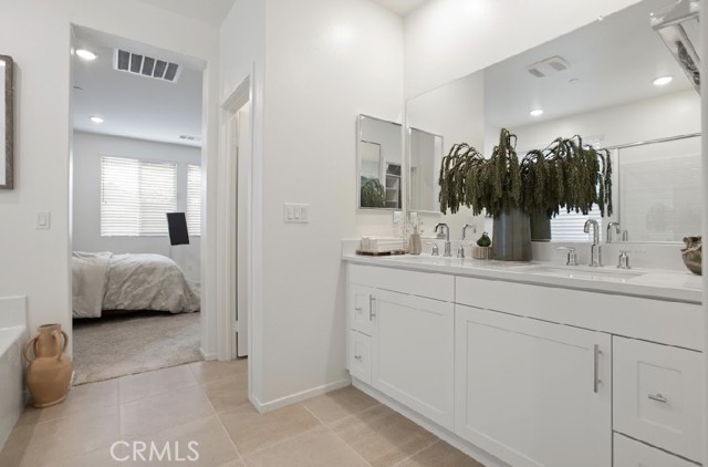 Welcome to this beautifully maintained 3-bedroom, 2-bath home located in the desirable Mesa Verde gated community, offering privacy, security, and exclusive access to a community pool. Step inside to soaring high ceilings and an open, airy layout that creates an inviting atmosphere from the moment you walk in. This home features paid-off solar, helping you maximize energy efficiency and long-term savings, along with a security system installed throughout for added peace of mind. The spacious primary suite is a true retreat, complete with a customized bathroom and a built-in walk-in closet system designed for both organization and luxury. Enjoy your own private backyard perfect for relaxing, entertaining, or unwinding at the end of the day. Don’t miss your chance schedule a showing today !