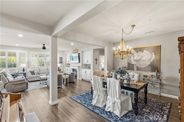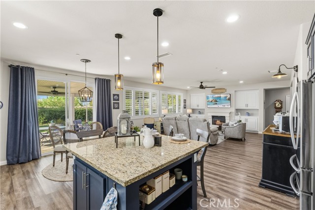 Beautifully maintained and thoughtfully designed, this single-story home in the highly desirable Spencer’s Crossing community offers 4 bedrooms, 2 bathrooms, and approximately 2,214 square feet of comfortable living space. Step inside to an open and inviting floor plan featuring a spacious family room with a cozy fireplace, perfect for relaxing or entertaining. The kitchen is the heart of the home, complete with a large center island, abundant counter space, and a dining area with views of the backyard. A separate formal dining room provides additional space for gatherings and special occasions. The primary suite offers a private retreat with an attached bathroom featuring dual sinks, a soaking tub, and a separate shower. Three additional bedrooms provide flexibility for family, guests, or a home office. Enjoy low-maintenance outdoor living with turf in both the front and backyard. The backyard also features a covered, paved patio ideal for outdoor dining and entertaining. Located just minutes from Clinton Keith shopping, dining, and everyday conveniences, with easy access to the 215 freeway for commuters. Residents of Spencer’s Crossing enjoy HOA amenities including pools, spa, sports parks, playgrounds, and beautifully maintained common areas. This home offers comfort, convenience, and community all in one.