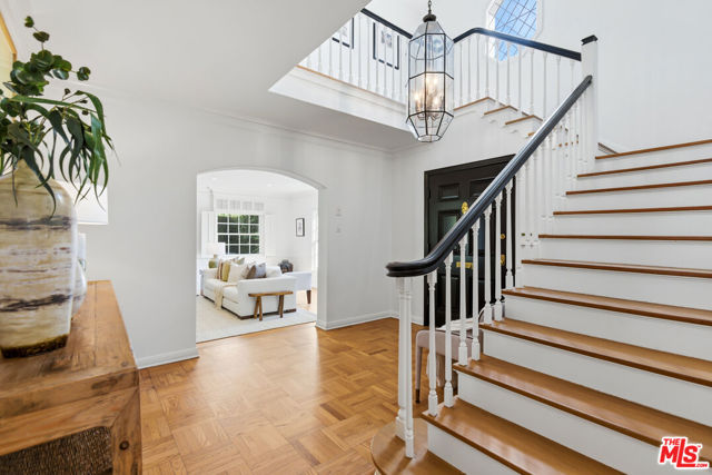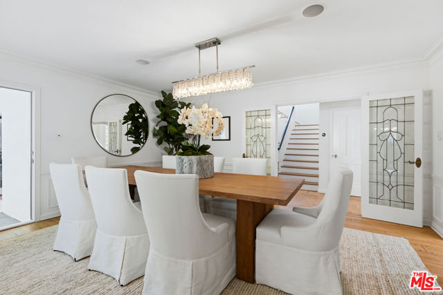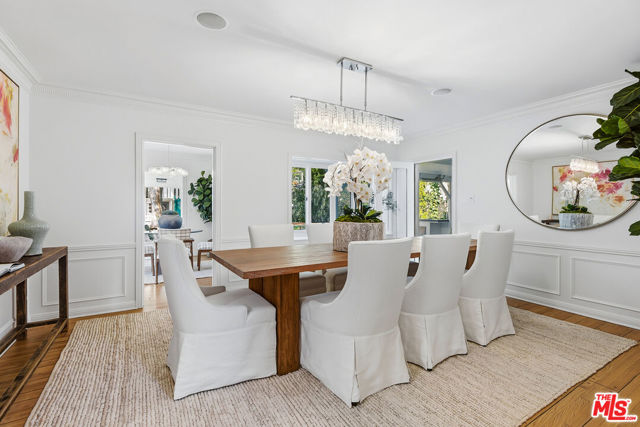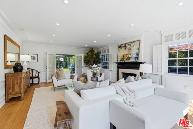Nestled in the prestigious and highly coveted Westwood Hills neighborhood, north of Montana Avenue, this beautifully maintained 4-bedroom, 3.5-bathroom Traditional home offers timeless elegance, warmth, and beautifully integrated outdoor living. The two-story foyer reveals a gracious floor plan leading into a spacious step-down living room featuring classic Colonial Revival millwork, including wainscoting, framed medallions, crown molding, and hardwood floors, creating an inviting space rich in character. The formal dining room is ideal for gatherings, while the charming breakfast room provides a relaxed setting for everyday living, both of which open to the outdoor entertaining areas. A beautiful den with built-ins, and diamond-pane leaded glass casement bay window offers an additional warm and inviting retreat. The kitchen is appointed with a Viking range and Sub-Zero refrigerator. The main level also includes an en-suite bedroom and a traditional powder room. Upstairs, the bright and airy primary suite offers comfort and functionality, featuring a charming reading nook, dual closets, and a spacious spa-like bathroom with a large shower. An additional upstairs bedroom is generously sized with ample closet space and connects via a Jack-and-Jill bathroom to another bedroom, which opens to a porch overlooking the backyard. Designed for effortless entertaining, the home opens to a large, flat backyard framed by a magnificent Chinese Elm canopy. The expansive outdoor space features a sport court, built-in barbecue, warming drawer, outdoor television area, overhead heaters, and an area for al fresco dining and gathering, ideal for enjoying Southern California's year-round indoor-outdoor lifestyle. Ideally located near UCLA and within the highly sought-after Warner Avenue Elementary School district, offering close proximity to Westwood Village, Century City, Brentwood, and access to world-class dining, shopping, and entertainment while maintaining the tranquility of a residential neighborhood.