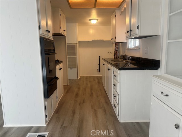 This cute 2-bedroom, 1-bath manufactured home offers approximately 806 sq. ft. of comfortable living space and is perfect for a first-time homebuyer. Located in Del Cielo Mobile Home Community, an ALL AGE PARK. this home features fresh interior paint, newer flooring, and new blinds throughout. Enjoy a spacious living and dining area complete with a charming built-in hutch, adding both character and functionality. Clean, simple, and move-in ready, this home offers an affordable opportunity to step into homeownership. The monthly space fee is 995 Financing available