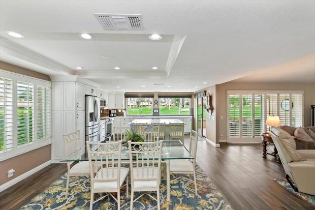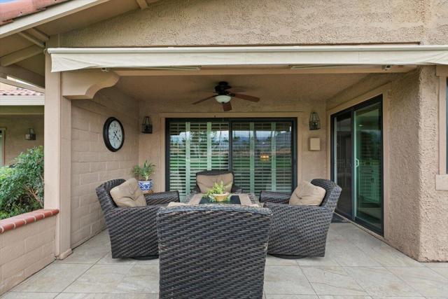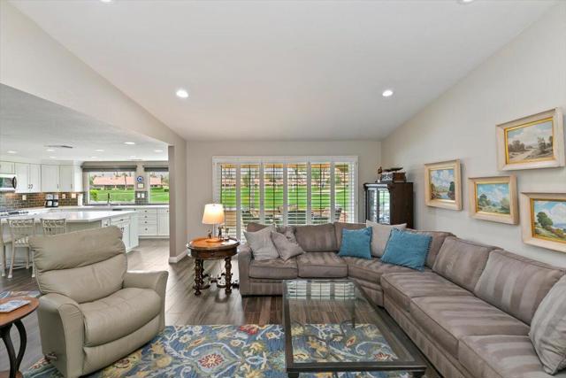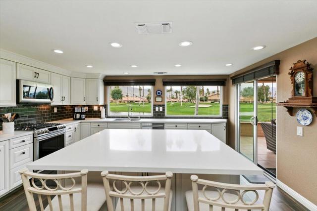 LOCATION, VIEWS AND TOTALLY RENOVATED. Welcome to your dream home in Chaparral CC where luxury meets spectacular panoramic views of the San Jacinto Mountains, the lake & greens of the 15th & 16th holes. This stunning 3-Bed, 3-Bath estate offers over 2,000 sq.ft. of elegance and comfort. Inside, natural light pours through new high efficiency windows and sliders, illuminating the open floor plan with its luxury porcelain wood tile flooring and sophisticated design. The expansive family room with vaulted ceilings & open concept dining room create the perfect spaces for relaxation and entertainment. The gourmet kitchen is a chef's dream, featuring a massive island, quartz countertops, 5 burner gas range, wine fridge, custom cabinets with under lighting and ample storage. Two primary bedrooms with ensuites await. The 1st offers a spa-like bath with dual sinks in matching quartz countertops and a walk-in closet, while the 2nd is perfect for guests or as a game room. The 3rd Bdrm has beautiful built-ins. Other features include crown molding in all bedrooms, ceiling fans, auto-retract awnings, Solar lights, Epoxy garage floor & quality cabinets. This is the unit you have been waiting for; Enjoy viewing the snowcapped mountains from your extended patio with privacy wall & watch the golfers hit over the lake on hole #16. Located in the heart of Palm Desert, Chaparral offers 18 holes of challenging golf, 21 pools & spas, tennis, pickle-ball, a fully equipped fitness room, activity center, pool and card tables and a remodeled clubhouse with world-class dining and entertainment