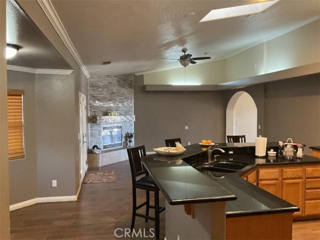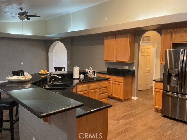 Great location, location, location, Gorgeous Ranch style home just off Baldy and Bear Valley Road, spacious floor plan, beautiful tile flooring, custom upgrades throughout, and over 2 acres of land makes this home the perfect property for a new or expanding family. The entire lot has utilized to its highest and best use with two outbuildings, covered/enclosed work area and a humongous storeroom or garage. A newer fence more than fifteen fruit trees, a peaceful place to live. See it to believe it.