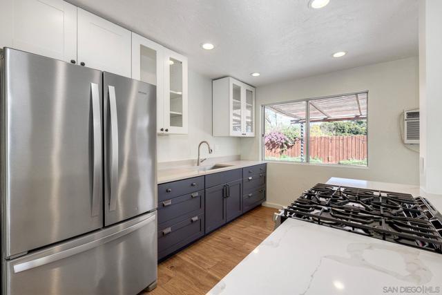 Two homes on one lot! Larger home features 3 bedrooms and 2 full baths, remodeled kitchen with quartz counter tops, upgraded cabinets, pergo flooring, deep farmhouse sink, newer roof, approx 1260 sq ft, private yard with fruit trees, 3 lifetime sheds, wall ac, 2 car gar which has been converted in storage rooms currently, washer and dryer and fridge. Second smaller home below with approx 600 sq ft, features private yard, brand new roof, fresh paint, kitchen and 1 bedroom, 1 bathroom, washer, dryer, and fridge, backs up to beautiful Berry St Park.