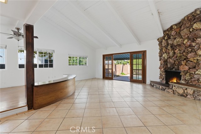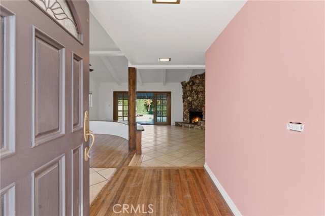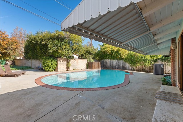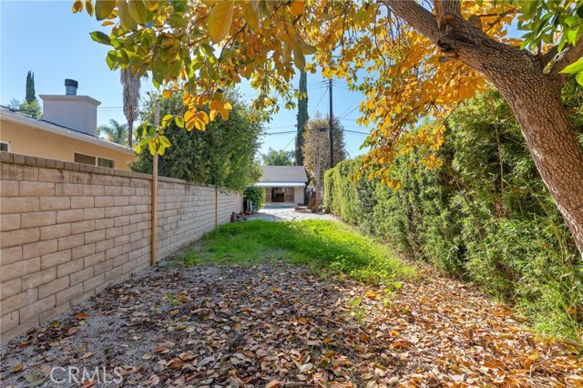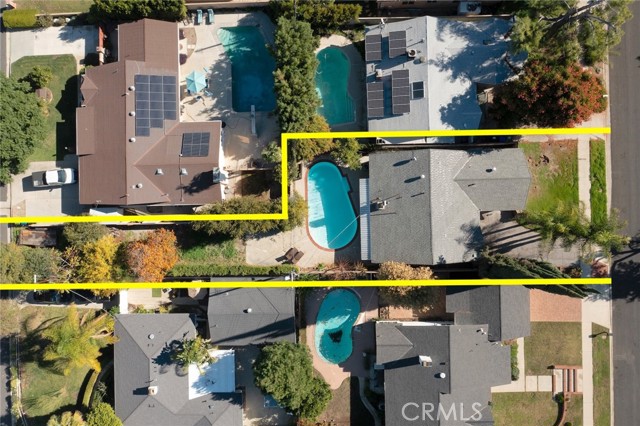 Fantastic opportunity to own a single story pool home situated on an extremely rare street-to-street lot! A large portion of the property extends over 200 feet and connects to the street behind (Miranda), presenting amazing investment potential to build an ADU or alternatively use for extra backyard play space for a sports court/outdoor kitchen/etc or use for oversized parking for RVs/boats - the possibilities are endless. The classic ranch home is cladded with original stone & wood siding and sits back from the street with long driveway lined by towering mature Palm trees that leads to the attached 2-car garage with direct access. Step inside to find a completely open floor plan filled with natural light. The oversized central living room boasts high vaulted wood beamed ceiling, stone fireplace, and sliding glass doors that open to the backyard. The open kitchen features granite counters and stainless appliances. A separate dining area connects the kitchen and living room and features real hardwood flooring. The three bedrooms are located on their own private wing of the home. The primary bedroom features a spacious closet and a private en-suite bathroom with walk-in shower. The two secondary bedrooms have closets with built-ins and share a large hall bathroom with dual sinks and bath tub with shower. The backyard is highlighted by a resurfaced swimming pool and features a sweeping covered patio for outdoor dining and an expansive portion of land with fruit trees that provides a blank canvas to customize to your liking. Additional system upgrades per seller include new HVAC system (2025), newer electrical panel (2023), copper plumbing (2006), and dual paned windows throughout. Adjacent to Westfield Mall/Village, Calabasas Commons, Warner Center with the new Rams Village in development, & zoned for award-winning El Camino & Hale charter schools.