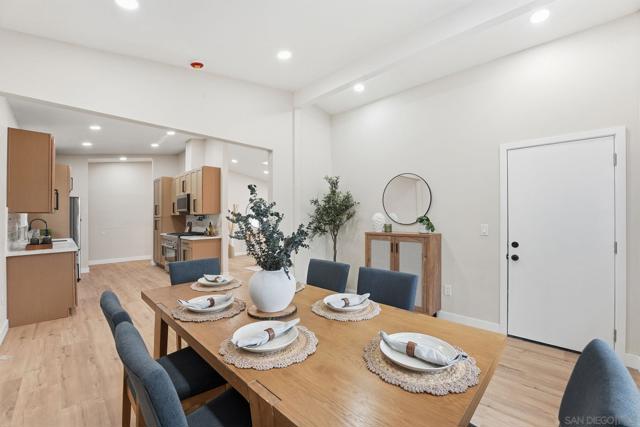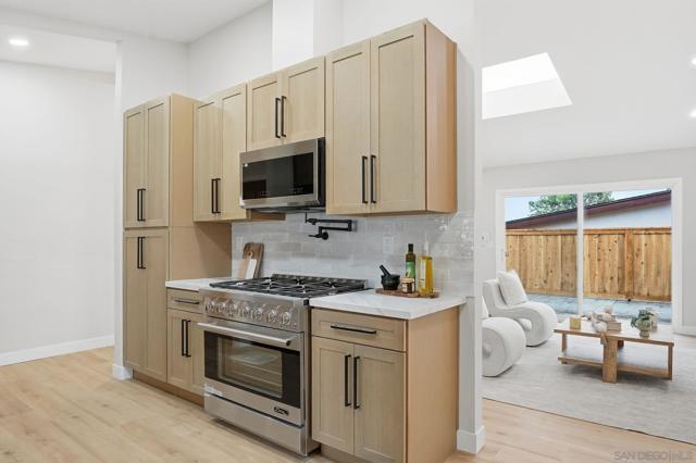 Welcome to this fully remodeled 3-bedroom, 2-bathroom home in the highly desirable neighborhood of Paradise Hills. Thoughtfully updated from top to bottom, this move-in-ready home blends modern design with warm, inviting finishes. Step inside to an open and airy layout featuring new flooring, recessed lighting, and a beautifully upgraded kitchen with custom cabinetry, sleek countertops, and stainless steel appliances. The bathrooms have been tastefully renovated with designer touches and spa-inspired details. The private backyard is truly a standout—featuring a sparkling pool, expansive stamped concrete patio, and a stunning desert-inspired landscape that creates a peaceful retreat perfect for entertaining or relaxing. The newly built deck adds even more outdoor living space to enjoy San Diego’s beautiful weather year-round. A rare opportunity to own a turnkey home with style, comfort, and an incredible backyard oasis in Paradise Hills.