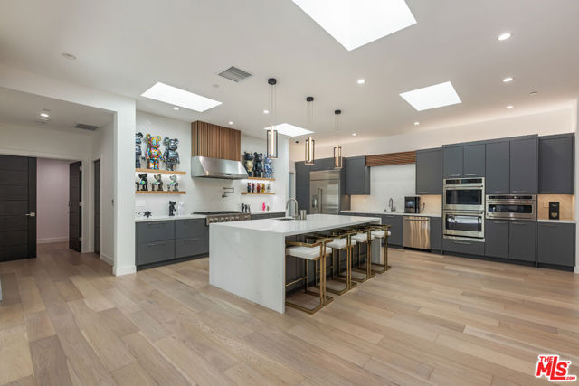 Welcome to 4516 Del Moreno, a stunning single story luxury residence, offering a perfect blend of elegance, comfort, and modern living. Located in the prestigious Vista de Oro neighborhood, this nearly new home features an open floor plan with 10-foot ceilings, filling the space with natural light. The gourmet kitchen, equipped with a large walk-in pantry, opens to the dining and living areas, making it ideal for entertaining. Enjoy seamless indoor-outdoor living with nearly 400 sq. ft. of covered terrace space, leading to a resort-style backyard complete with a pool, spa, fire pit, and outdoor kitchen. The home provides ultimate privacy with split bedroom wings. The east wing includes 2 bedrooms and a junior suite, while the luxurious primary suite in the west wing boasts a spa-like bathroom and a spacious walk-in closet. A separate en-suite room can be used as a fifth bedroom or office. Conveniently located south of the Boulevard, this home is just minutes from freeways, dining, and shopping, nestled in the tranquil foothills between Encino, Tarzana, and Calabasas. Don't miss the opportunity to own this stunning home!