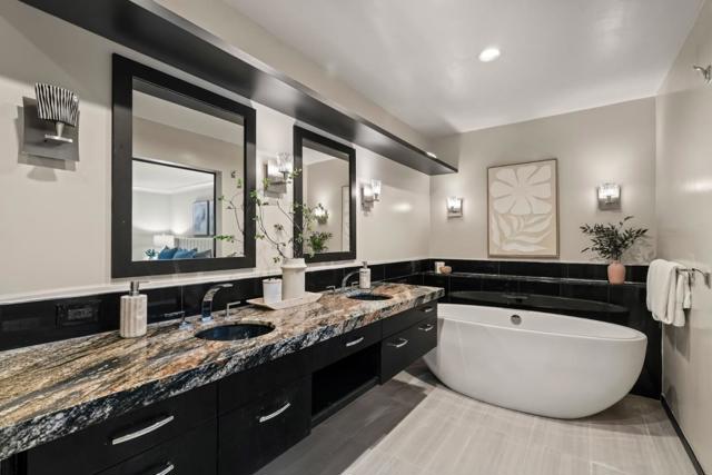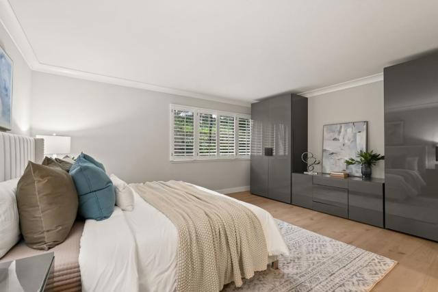 Beautifully remodeled townhome showcasing contemporary style, soaring high-pitched ceilings, skylights, and expansive windows that flood the interior with natural light. Fresh interior paint and newly installed engineered hardwood floors create a crisp, modern aesthetic, complemented by smart-home upgrades including an EV charger, Lutron lighting system, MyQ garage door opener, and Ring doorbell. Enjoy serene views of Sharon Heights Golf Course and seamless indoor-outdoor living as the open living and dining areas, anchored by a fireplace, extend to a gracious private patio ideal for entertaining.The updated chefs kitchen features granite countertops, a dining bar, and top-quality stainless steel appliances, offering both style and functionality. Three generously sized bedrooms include a desirable ground-floor primary suite with remodeled en-suite bath and built-in cabinetry. A beautifully remodeled hall bath completes the two upstairs bedrooms. Additional highlights include central air conditioning, an oversized laundry/workroom, and an attached two-car garage. Ideally situated in a premier mid-Peninsula community with lush landscaped grounds and a community pool, this exceptional home offers convenient access to Stanford University, Sand Hill Road, and Highway 280.