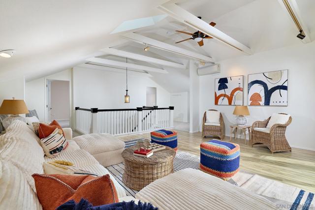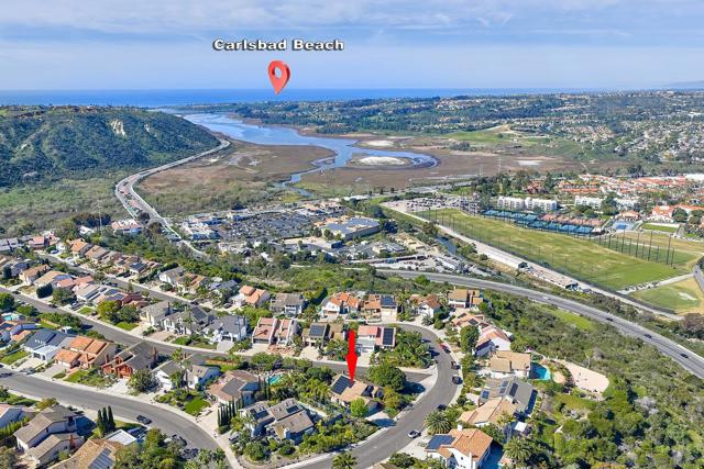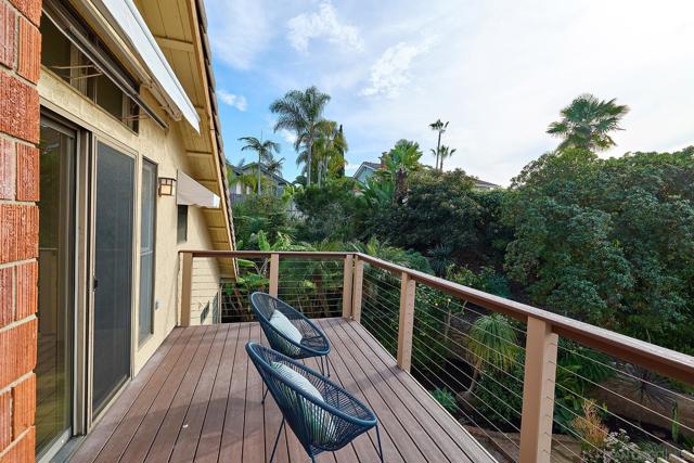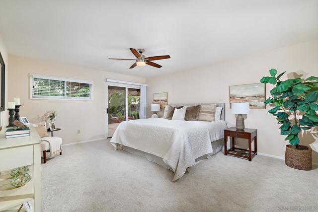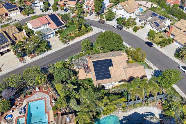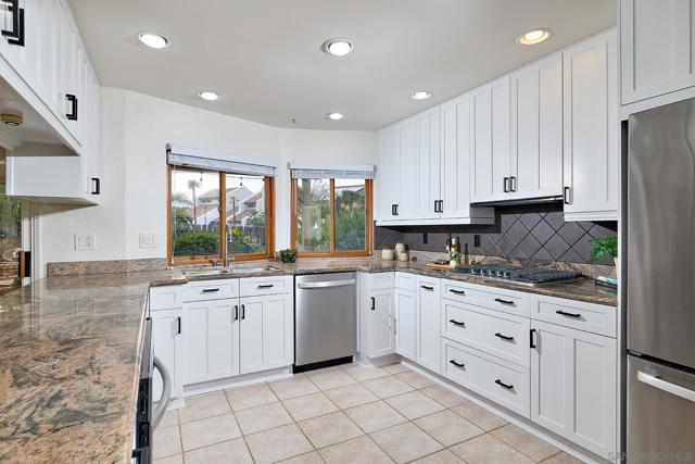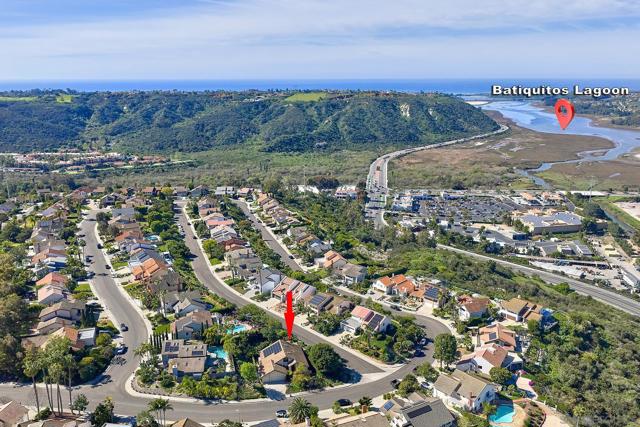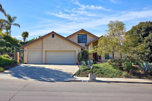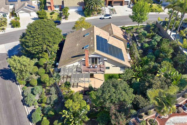 Situated on a peaceful, oversized lot in the desirable Monarch Hill neighborhood of La Costa, this thoughtfully updated property offers a wonderful floorplan with FIRST FLOOR PRIMARY and NO HOA! Step inside to fresh interior paint and new carpeting that enhance the home’s light, open feel. The formal living and dining room flows seamlessly into a separate family room anchored by a charming brick fireplace. The kitchen is well-appointed with stainless steel appliances, including a newer dishwasher, refrigerator, and gas range, along with recessed lighting, modern hardware, and a sunny breakfast area. The main level features a downstairs primary suite along with two additional bedrooms, ideal for multi-generational living or work-from-home flexibility. The primary retreat includes sliders to the lush backyard and a spacious bathroom with soaking tub, separate shower, vanity, and a double-sink island. A dedicated laundry room completes the lower level. Upstairs, you’ll find two additional bedrooms and a large bonus room with a view balcony and powered skylights—perfect as a media room, playroom, or private retreat! The expansive backyard offers a tranquil setting with mature landscaping, new sod, ample patio space, a firepit, and numerous fruit trees, including lime, lemon, fig, pomegranate, almond, banana, and blackberry bushes. A new Wi-Fi–enabled irrigation controller for the six-station system can be easily managed from anywhere. Newer tankless water heater, owned 24-panel solar system, Bluetooth-wired speakers in the family and living rooms. See supp. 3-car garage equipped with a Tesla Powerwall, Level 2 EV charger, Tailwind Wi-Fi garage door openers, and a temperature-controlled attic fan. Located in an exceptional location within the highly regarded Encinitas Union Elementary and San Dieguito Union High School districts, and close to fantastic, dining, shopping and beaches!