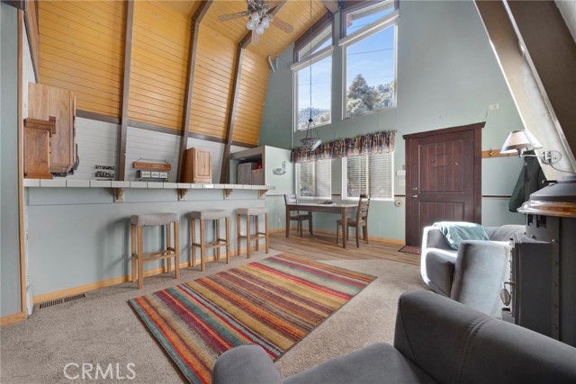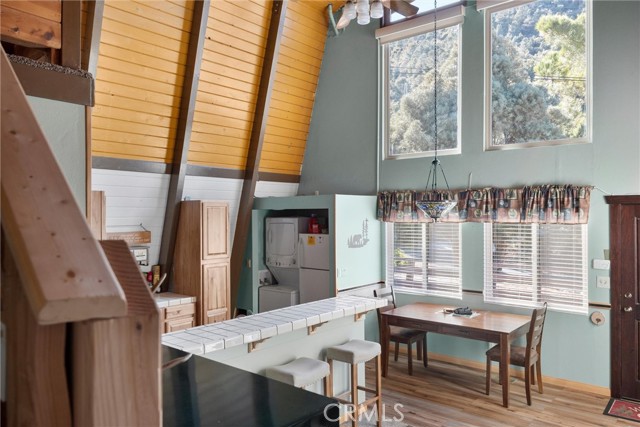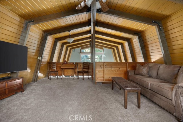 Tucked at the quiet east end of town, where the road narrows and the forest deepens, this classic gambrel cabin feels like something out of an old mountain story. Step inside and you’ll find warm wood tones, vaulted ceilings, and that unmistakable cabin scent of pine and earth. The open living area centers around a pellet stove—perfect for slow mornings or nights when the wind moves through the trees outside. Two bedrooms and a full bath sit on the main level, while upstairs, a spacious loft waits to become whatever you need it to be: a writer’s hideaway, a second living space, or a place for guests to stretch out after a long hike. Outside, a large front deck catches the afternoon sun, while the back deck looks out toward the trees and a seasonal creek that winds along the edge of the property. Beyond that—nothing but open greenbelt that leads straight into Los Padres National Forest. Beyond your doorstep, life here stretches wider than any single home. Membership in the Pine Mountain Club Property Owners Association opens a world of trails, tennis, pickleball, golf, poolside summers, fishing at Fern’s Lake — even an equestrian center. When the snow falls, roads are cleared, patrols keep watch, and neighbors quietly look out for one another. It’s quiet here. Peaceful. The kind of cabin that doesn’t try too hard—just stands ready for weekends of solitude, firelight, and the sound of water at the edge of your land.