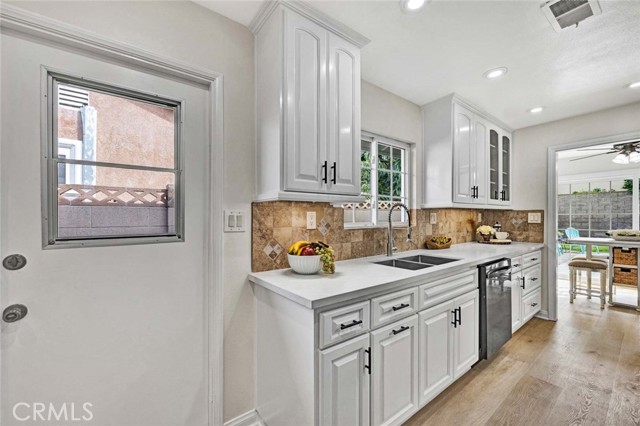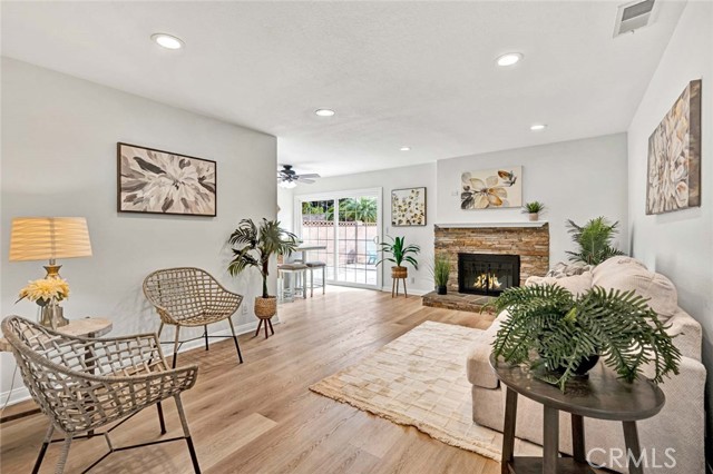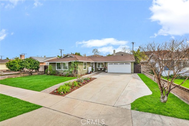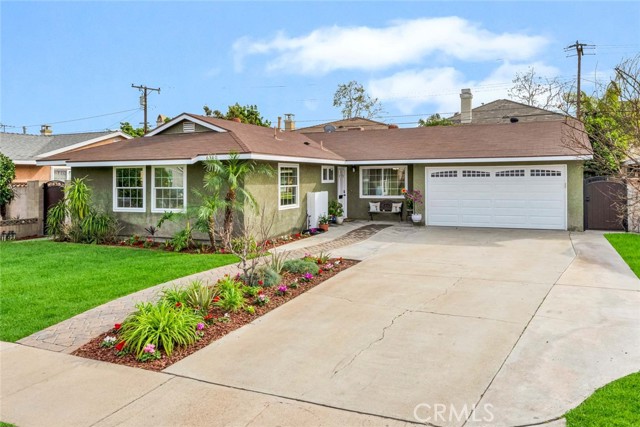 Welcome to this nicely updated 3 bedroom,2 bath single-story home nestled in the highly sought-after “San” streets of Buena Park—a neighborhood first-time buyers dream about.From the moment you arrive,the exquisite curb appeal sets the tone w/charming stone paver walkway leading you thru colorful blooming flowers on both sides,framed by graceful palm trees & an extra-wide driveway — creating a warm, welcoming first impression that instantly feels like home.Step inside to a light,bright & airy open floorplan w/ an extra-large living room featuring luxury vinyl plank flooring,extra tall baseboards,recessed lighting & beautifully anchored by stack stone fireplace w/ slate hearth & wood mantle.Flow into the spacious dining room,highlighted by a lighted ceiling fan & sliding glass doors that showcase views of the massive backyard—inviting indoor-outdoor living at its best.The true heart of the home is the gorgeously remodeled kitchen,thoughtfully designed to inspire.Enjoy stunning white cabinetry(some w/ elegant glass fronts),limestone backsplash w/ designer touches,extra-large pantry w/ multiple pull-outs & huge stainless steel sink w/ newer faucet.Also features:a 5-burner Samsung range,matching Samsung microwave,high-end Samsung dishwasher & recessed lighting on dimmers—nicely blending beauty and function.The primary bedroom (12’ x 10’) provides a peaceful retreat with its own lighted ceiling fan & en-suite bath complete w/ newer lighting fixtures & a walk-in shower.Newer HVAC system,Newer water softener system,Dual pane vinyl windows,tankless water heater,2 new side gates,block walls for privacy,RV parking potential. And then… the backyard.Prepare to fall in love.The massive patio area is perfect for entertaining/weekend barbecues,highlighted by huge brick barbecue,multiple citrus trees—orange, lemon,mango,grapefruit—create a garden-like setting,while a freshly planted,expansive lawn offers room to run,play,and grow.The show-stopper is the incredible permitted two-story structure—freshly painted & full of possibility w/its own power,roof,balcony & attached swing set w/ 4 swings,it can serve as a magical playhouse,dollhouse,creative workshop,or whatever your imagination dreams up.Located close to walking trails,wonderful parks,Knott’s Berry Farm,& Cypress College.This is more than just a house—it’s a place where first memories are made,where backyard birthdays are celebrated,where kids swing high under sunny California skies & where your next chapter begins.