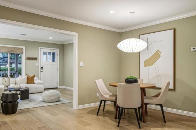 Experience a sophisticated one-level home in a prime Redwood City location. Just blocks from shopping, dining, and activities at Woodside Shopping Plaza, and mere moments from Hwys 280 and 101, this neighborhood is known for its proximity to exciting Downtown Redwood City and serves as a convenient "back door" to Atherton, Menlo Park, Stanford University, and all that Silicon Valley has to offer. Inside, enjoy rich details, moldings, and custom finishes. The intimate-feeling living room features built-ins surrounding the fireplace, while the room flows to the open-concept kitchen with a grand expanded island that can accommodate seating on two sides, making this truly the hub and heart of the home where you can see and enjoy everything both inside and out. Enjoy a chef-quality 6-burner gas range with a vented hood above. There is plenty of space and an eat-in area, plus access to the large Laundry/Multi-purpose room and attached garage. Sliding glass doors continue the living space outdoors to the backyard, which features a deck, large patio, and built-in BBQ center with a fridge and lush plantings. Inside, the bright primary bedroom has multiple closets and a spa-like en-suite with custom finishes, a dual vanity, and a glass shower. Sound system, AC, and more to see in person!