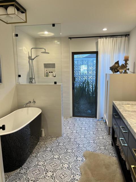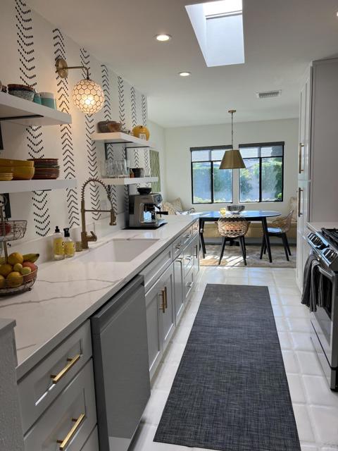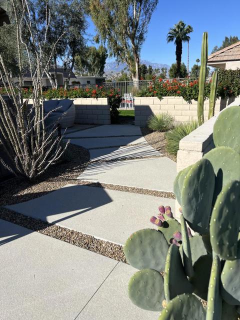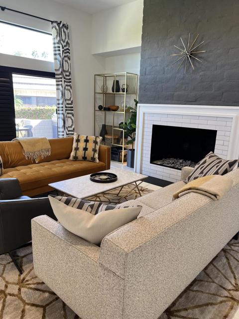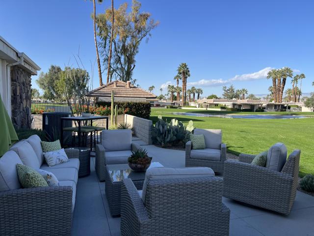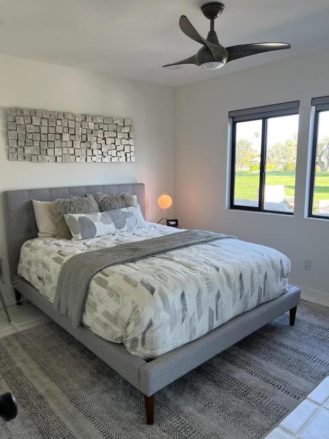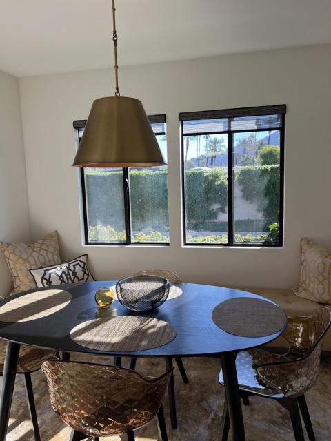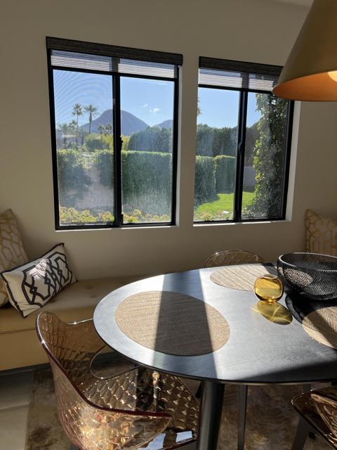 Wow! Another stunning remodeled condo available in La Rocca. Fabulous views of the golf course and mountains. Upgrades galore. Easy access to the pool/spa. La Rocca is a very private and quaint community of 68 units on 22 acres including a 9 hole pitch and putt golf course, tennis courts, a pickle ball court and 6 pools with spas. La Rocca has a very tranquil setting that includes three ponds with streams. Indian Wells residents enjoy many discounts including discounted golf at the IW resort, restaurants, spas and more.