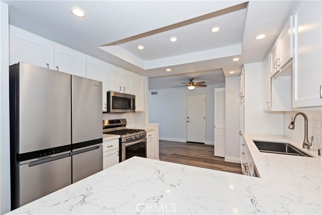 Discover modern comfort and style in this meticulously upgraded 3-bedroom, 2.5-bath townhome with an attached two-car garage, located in the heart of Tustin Ranch. Offering a prime corner location with abundant natural light and high ceilings. The first floor features newer luxury vinyl plank flooring, while plush high-end carpet covers the stairs and upper level. The remodeled kitchen shines with quartz countertops and top-tier stainless steel appliances. The open floorplan provides both a living room and family room—perfect for entertaining or a home office. A beautifully updated fireplace with custom painted bricks, a natural wood mantle, and a sleek black insert adds a cozy touch. From the dining area, step through the sliding glass door onto a private patio that’s ideal for outdoor relaxation. Upstairs, the spacious primary suite features a walk-in closet and vaulted ceilings. Both bathrooms have been fully remodeled, and newer blinds throughout complete the home’s polished design. Practical updates include a newer HVAC system, water heater, and ductwork, ensuring energy efficiency and year-round comfort. The community includes a private pool and spa, and a nearby park features a tot lot, basketball court, and picnic area. Conveniently located near Tustin Ranch Golf Club, Tustin Market Place shopping and dining, and award-winning schools. Don’t miss this opportunity to lease a thoughtfully upgraded home in a desirable location!